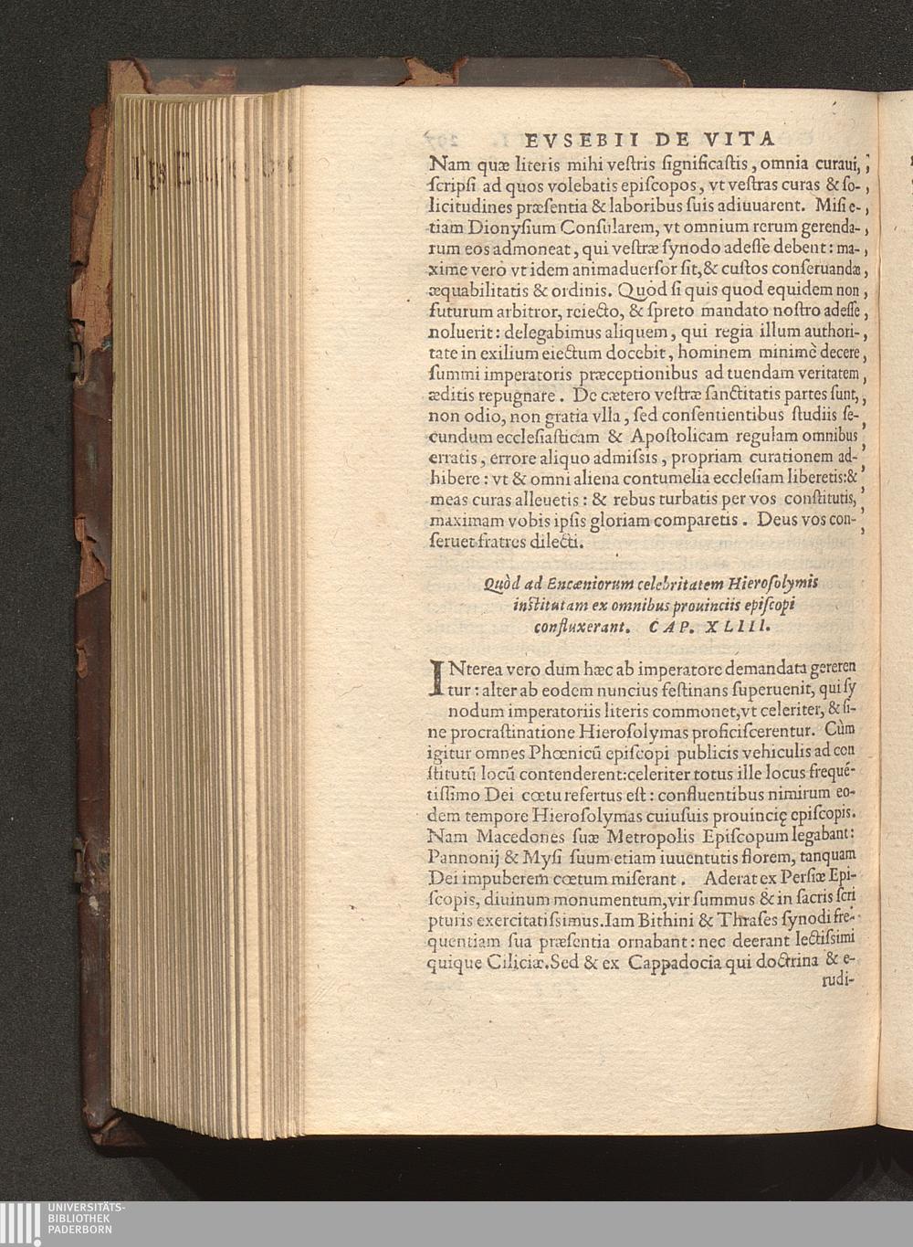 Prima (1569) HISTORIAE EC||CLESIASTICAE PARS || PRIMA, QVA CONTI-||NENTVR || Eusebij cognomento Pamphili Cæsareæ Palæ-||stinæ Episcopi lib. 10.|| Eiusdem de vita Constantini magni lib. 4.|| Oratio Constantini magni ad sanctoru[m] cœtu[m].|| Oratio eiusdem Eusebij in laudem Constanti-||ni magni ad trigesimum illius imperij an-||num, ... ||