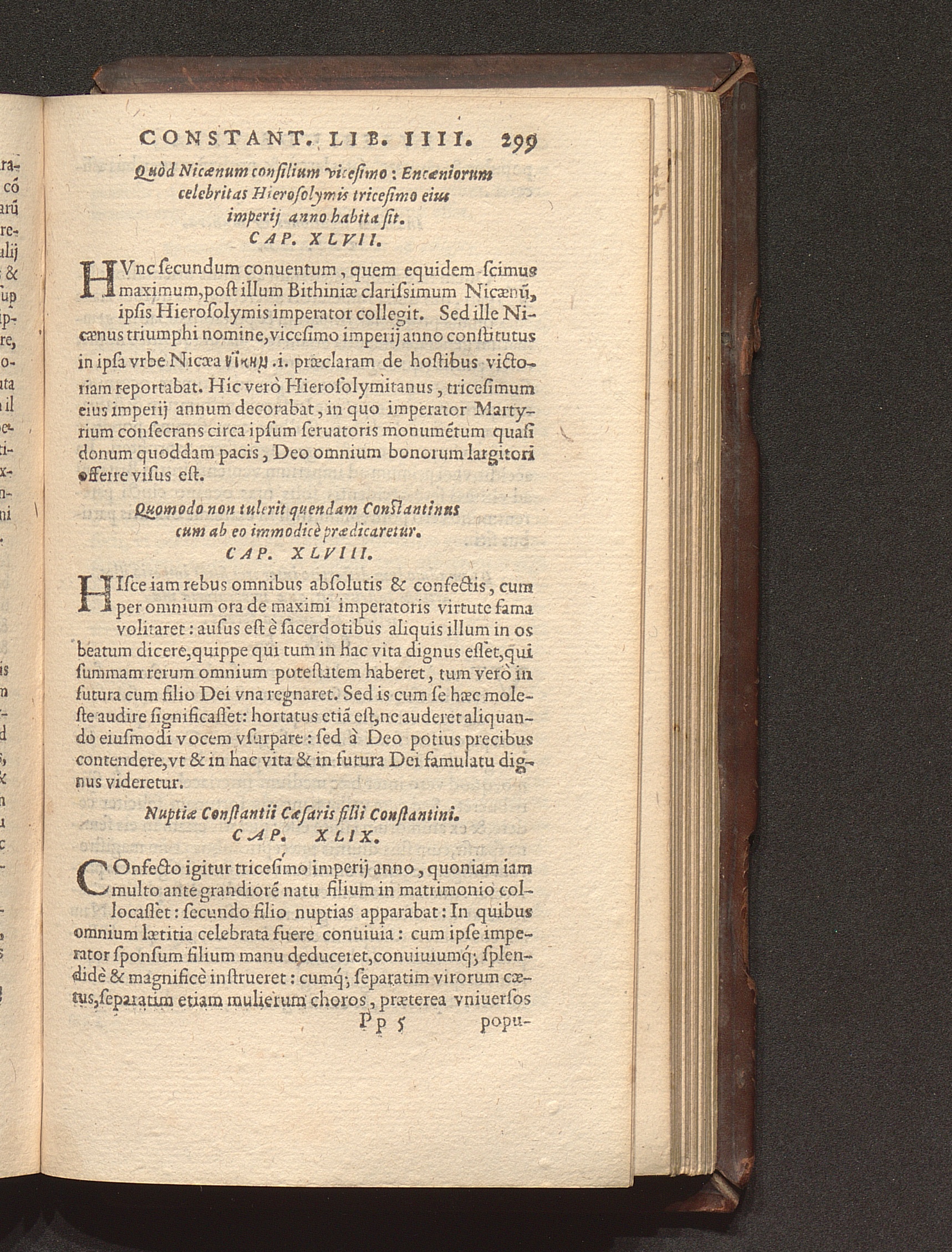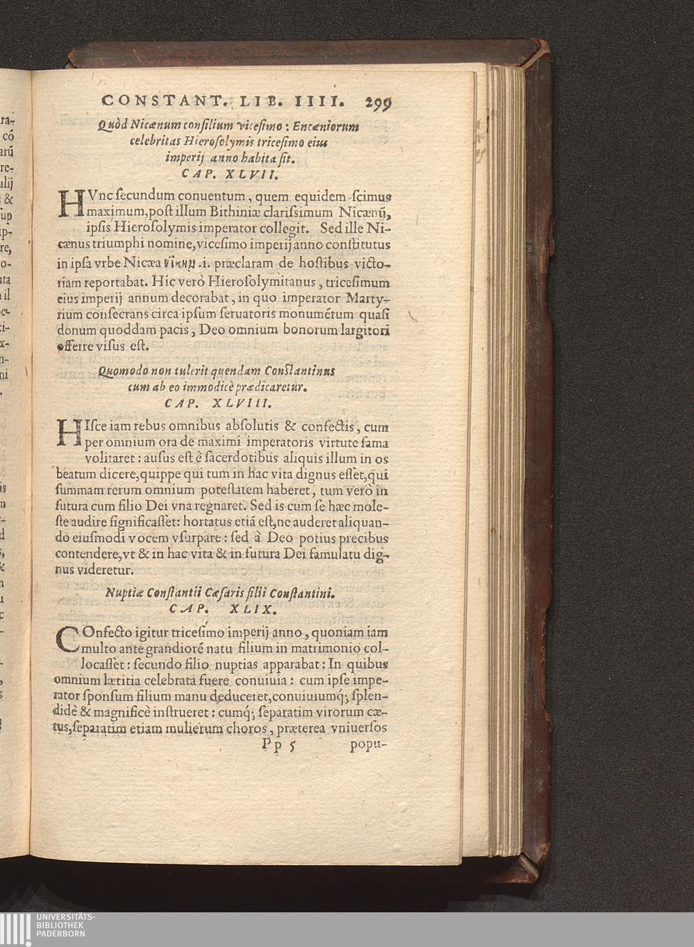 Prima (1569) HISTORIAE EC||CLESIASTICAE PARS || PRIMA, QVA CONTI-||NENTVR || Eusebij cognomento Pamphili Cæsareæ Palæ-||stinæ Episcopi lib. 10.|| Eiusdem de vita Constantini magni lib. 4.|| Oratio Constantini magni ad sanctoru[m] cœtu[m].|| Oratio eiusdem Eusebij in laudem Constanti-||ni magni ad trigesimum illius imperij an-||num, ... ||
