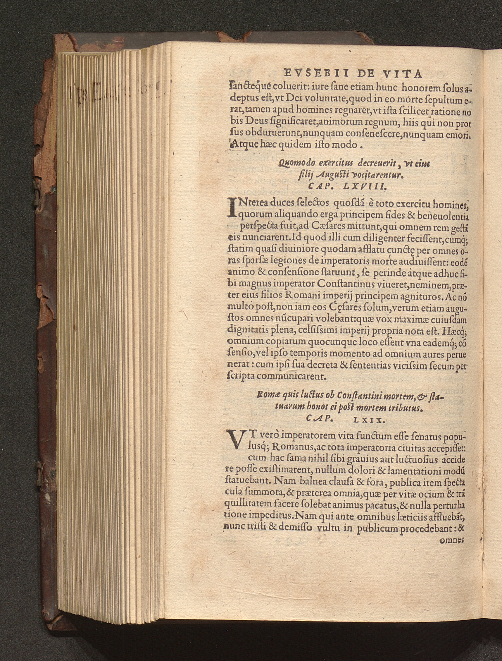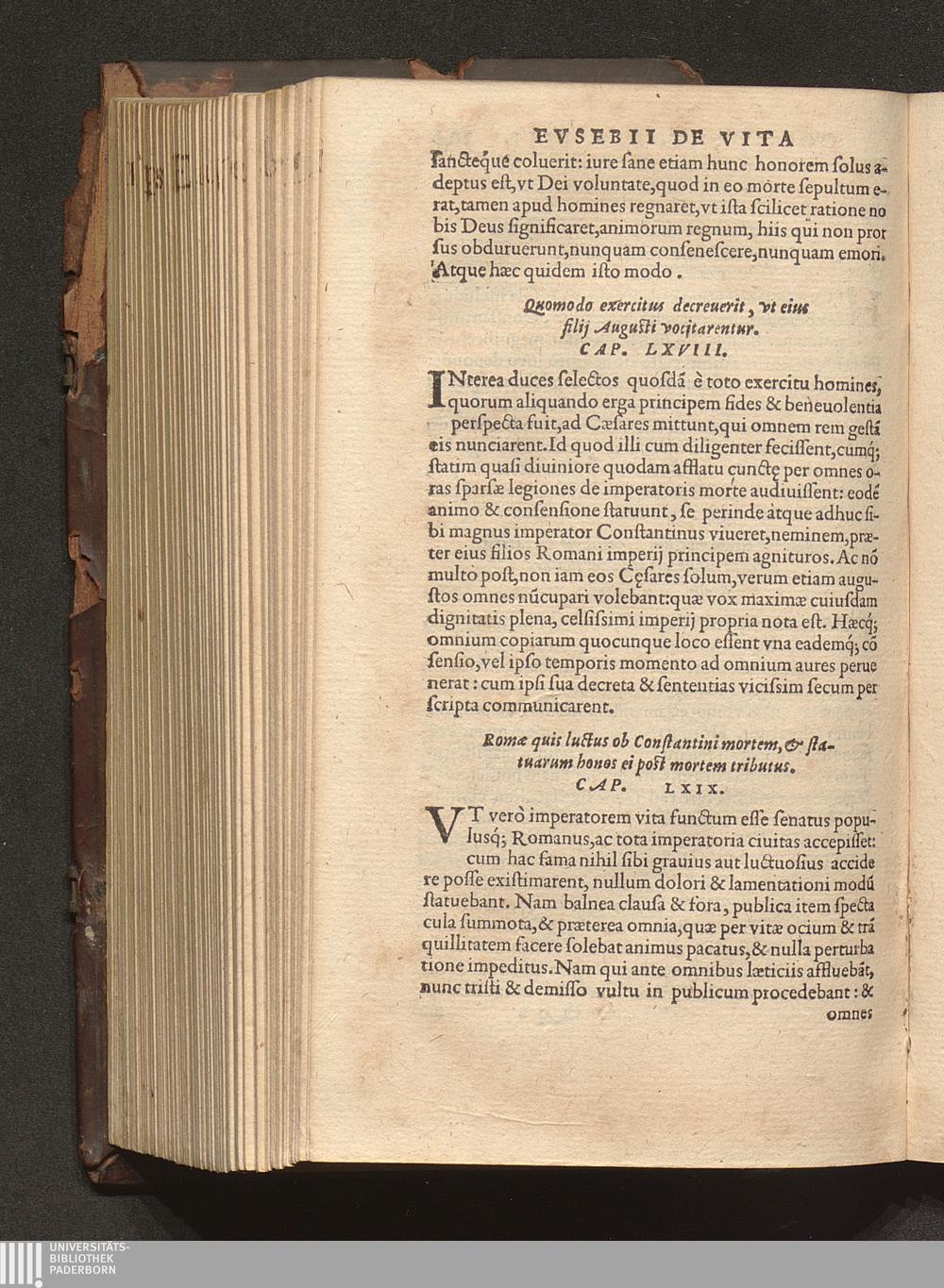 Prima (1569) HISTORIAE EC||CLESIASTICAE PARS || PRIMA, QVA CONTI-||NENTVR || Eusebij cognomento Pamphili Cæsareæ Palæ-||stinæ Episcopi lib. 10.|| Eiusdem de vita Constantini magni lib. 4.|| Oratio Constantini magni ad sanctoru[m] cœtu[m].|| Oratio eiusdem Eusebij in laudem Constanti-||ni magni ad trigesimum illius imperij an-||num, ... ||