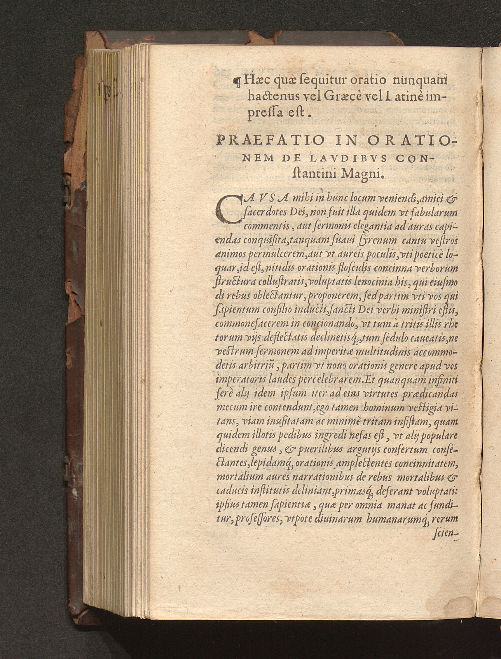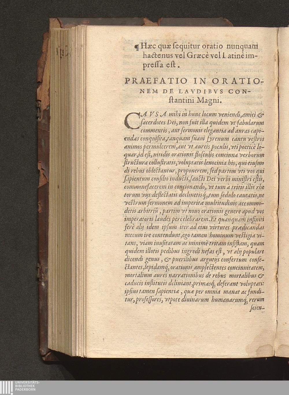 Prima (1569) HISTORIAE EC||CLESIASTICAE PARS || PRIMA, QVA CONTI-||NENTVR || Eusebij cognomento Pamphili Cæsareæ Palæ-||stinæ Episcopi lib. 10.|| Eiusdem de vita Constantini magni lib. 4.|| Oratio Constantini magni ad sanctoru[m] cœtu[m].|| Oratio eiusdem Eusebij in laudem Constanti-||ni magni ad trigesimum illius imperij an-||num, ... ||