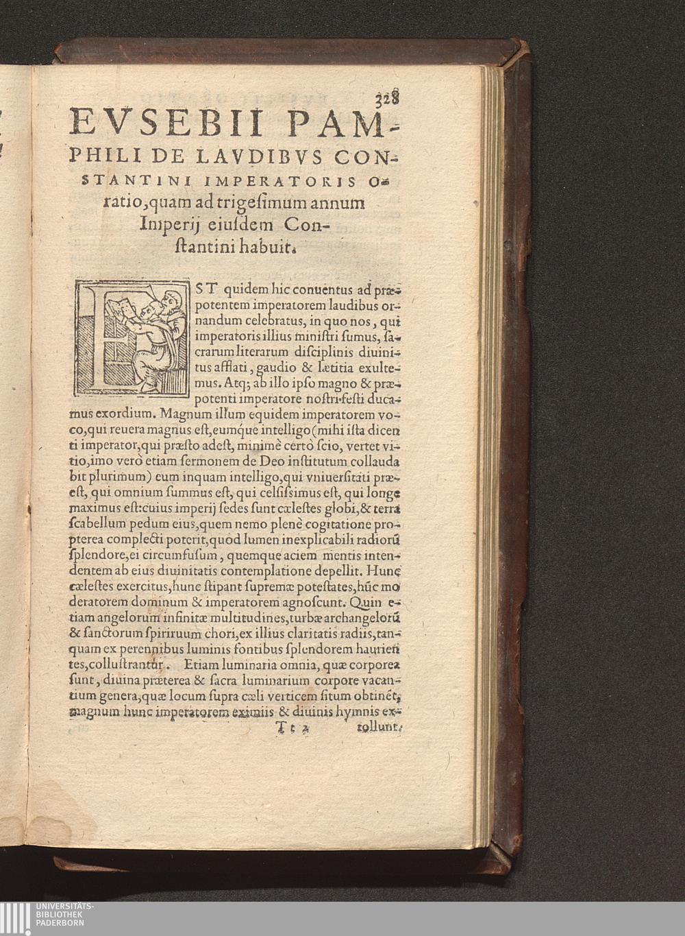 Prima (1569) HISTORIAE EC||CLESIASTICAE PARS || PRIMA, QVA CONTI-||NENTVR || Eusebij cognomento Pamphili Cæsareæ Palæ-||stinæ Episcopi lib. 10.|| Eiusdem de vita Constantini magni lib. 4.|| Oratio Constantini magni ad sanctoru[m] cœtu[m].|| Oratio eiusdem Eusebij in laudem Constanti-||ni magni ad trigesimum illius imperij an-||num, ... ||