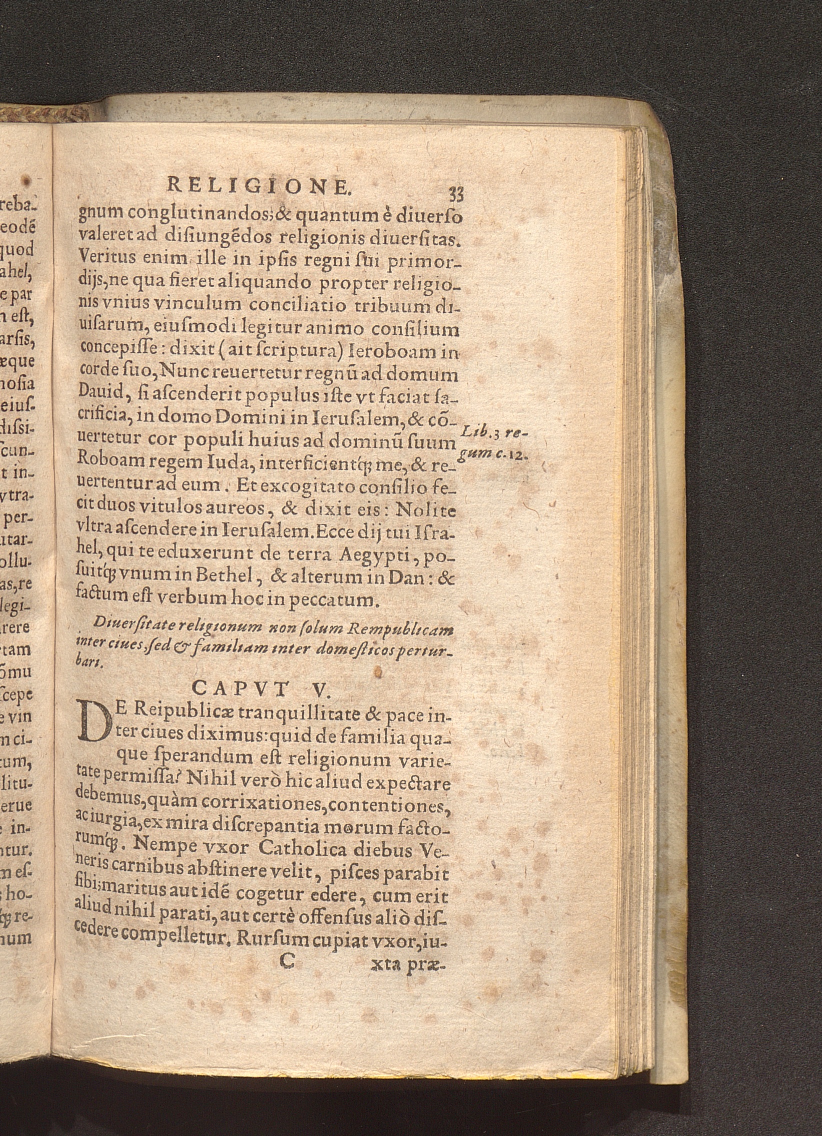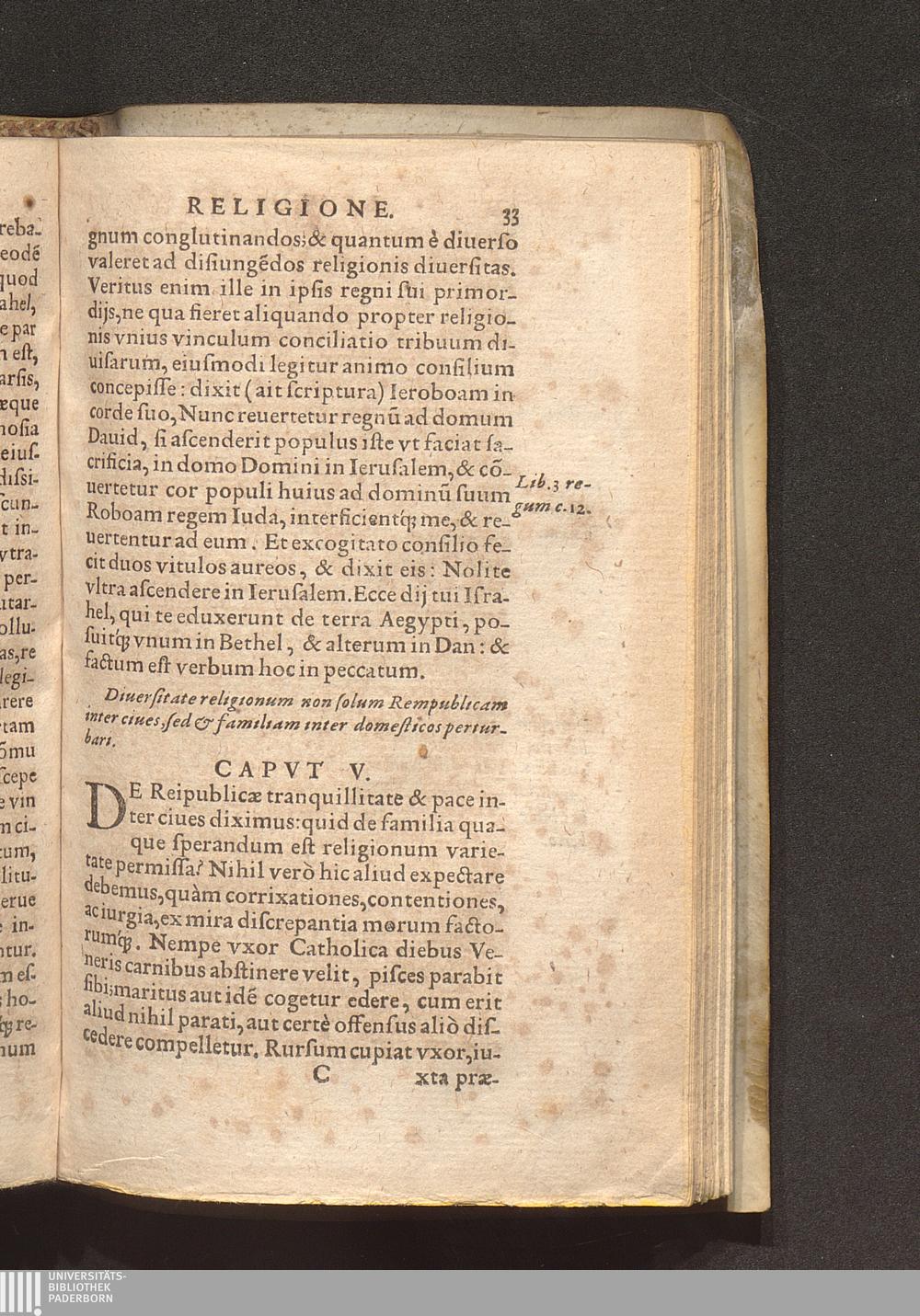 In vnica religione Catholica concordiae pacisq[ue] publicae vinculum praecipuè consistere, eoque soluto grauißimè perturbari. Cap. IIII.