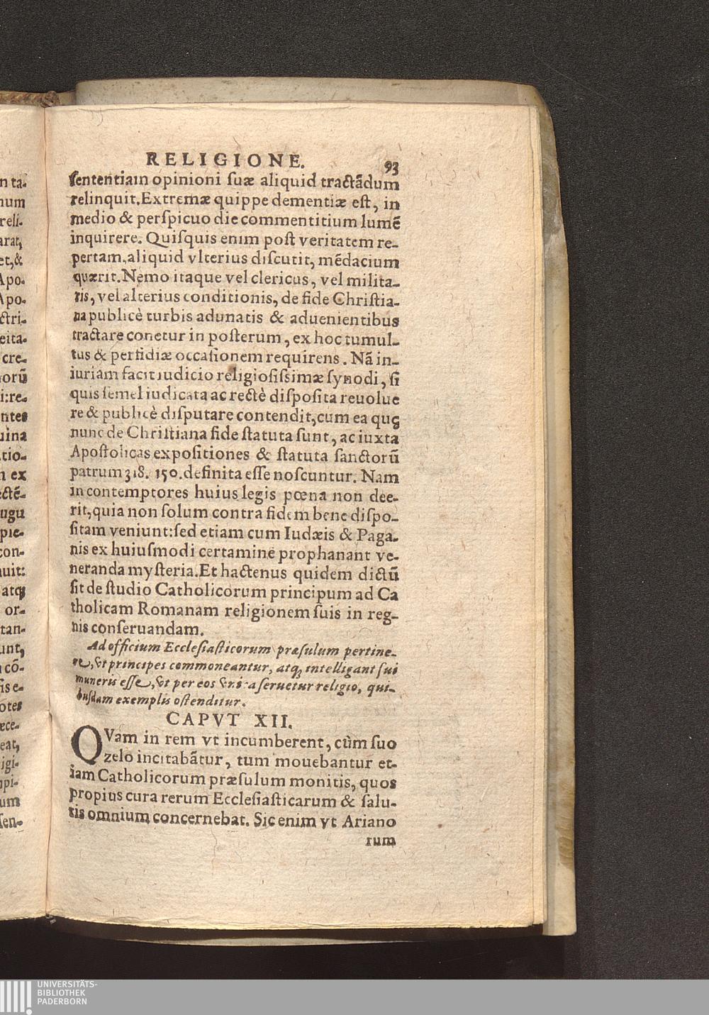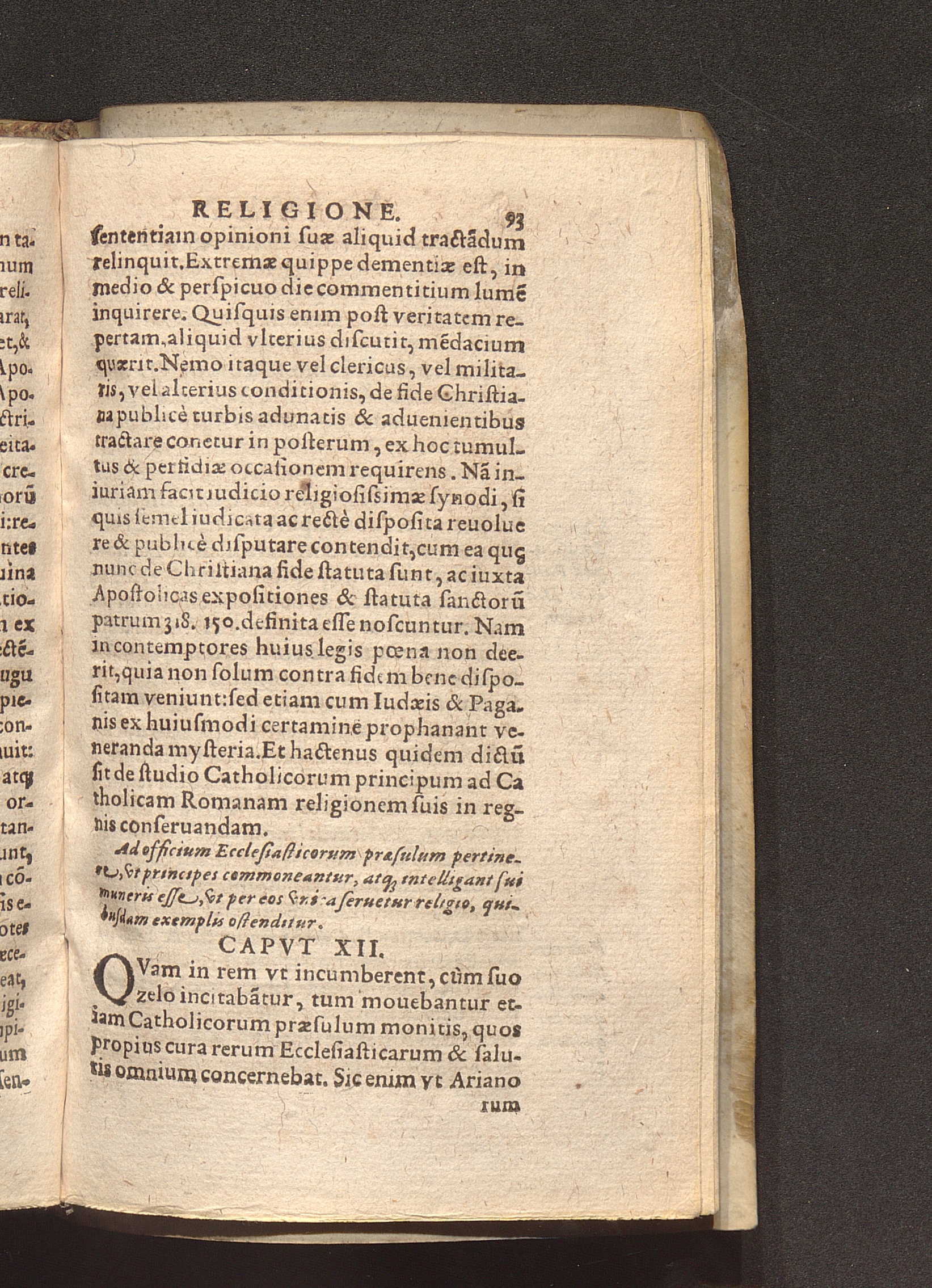 Ad officium Ecclesiasticorum praesulum pertinere, vt principes commoneantur, atque intelligant sui muneris esse, vt per eos vnica seruetur religio, quibusdam exemplis ostenditur. Cap. XII.