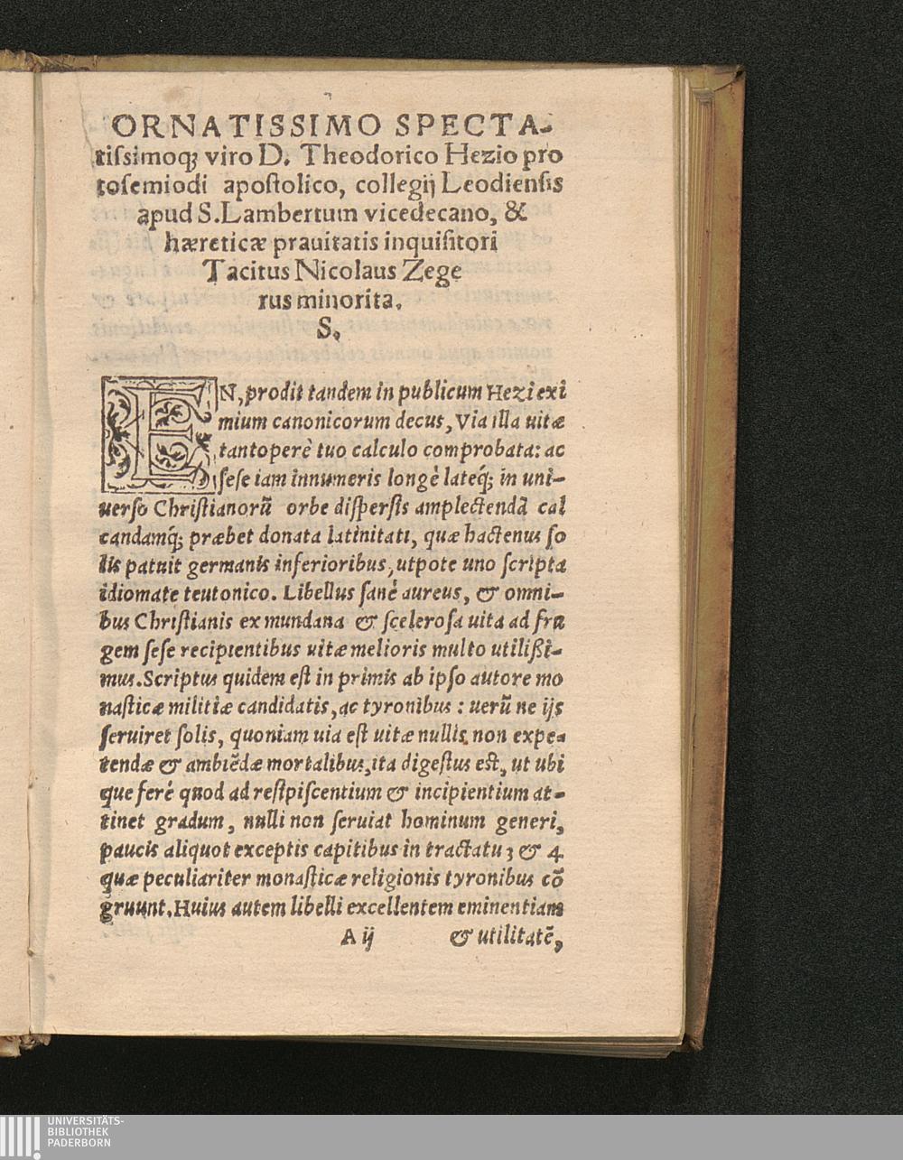 Via Vitæ Operis Hvivs Hypothesis : Habet hoc opus pias & spiritualeis christiani hominis institutiones exhortationesq[ue], quibus eruditur quo pacto & incipienda, & continuanda sit uia uirtutum, ut tandem ad ueram peruenire poßit uitam spiritualem / Autore in teutonico idiomate D. Florentio Harlemano. ... interprete latino Tacito Nicolao Zegero minorita