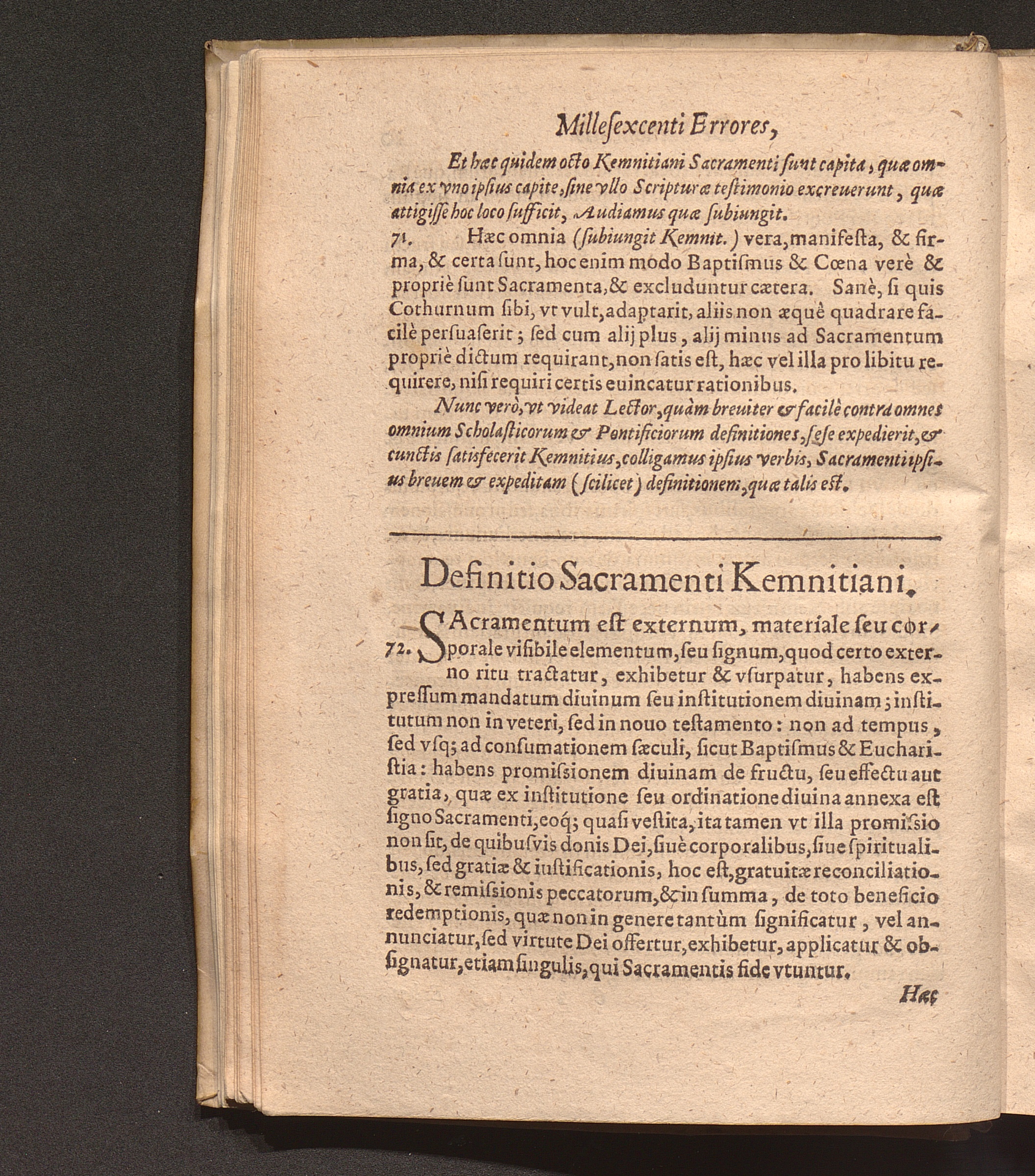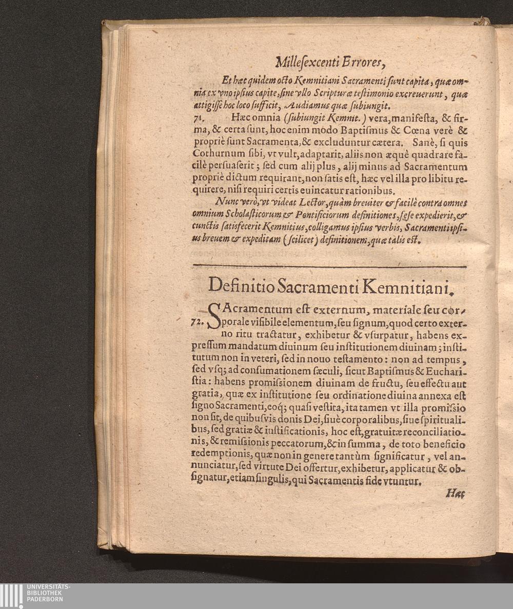 De Sacramentis, Mille Sexcenti Errores, Vaniloqvia, Et Cavillationes : Eorum, qui hoc tempore ab Ecclesia secesserunt Catholica, cum breui eorundem refutatione / Pleriq[ue] collecti ex Kemnitio. Per Vitvm Miletvm Gamvndianvm, S. Theologiæ Doctorem
