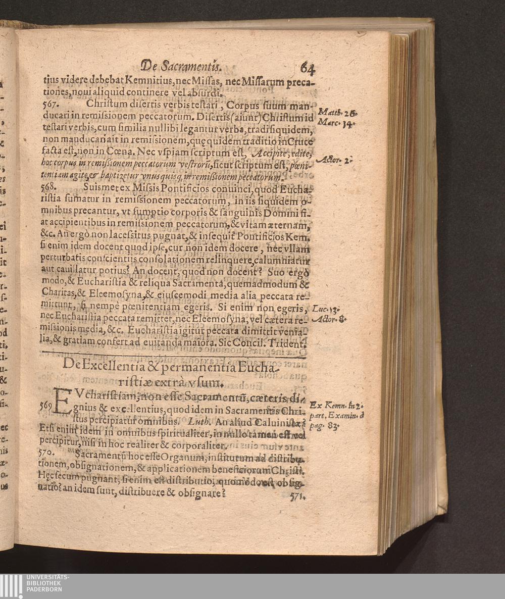 De Sacramentis, Mille Sexcenti Errores, Vaniloqvia, Et Cavillationes : Eorum, qui hoc tempore ab Ecclesia secesserunt Catholica, cum breui eorundem refutatione / Pleriq[ue] collecti ex Kemnitio. Per Vitvm Miletvm Gamvndianvm, S. Theologiæ Doctorem