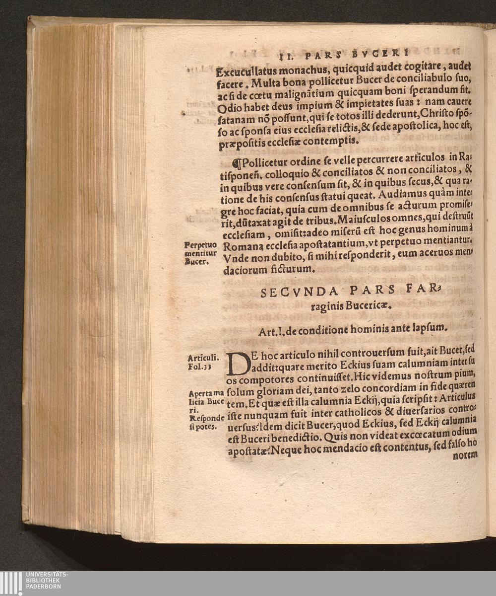Replica Ioan. Eckii Adversvs Scripta secunda Buceri apostatæ super actis Ratisponæ : Accusatur contumacia Buceri nihil respondentis ad obiecta in Apologia ; Oblatio Eckij facta in Apologia fol. 108. hic repetitur