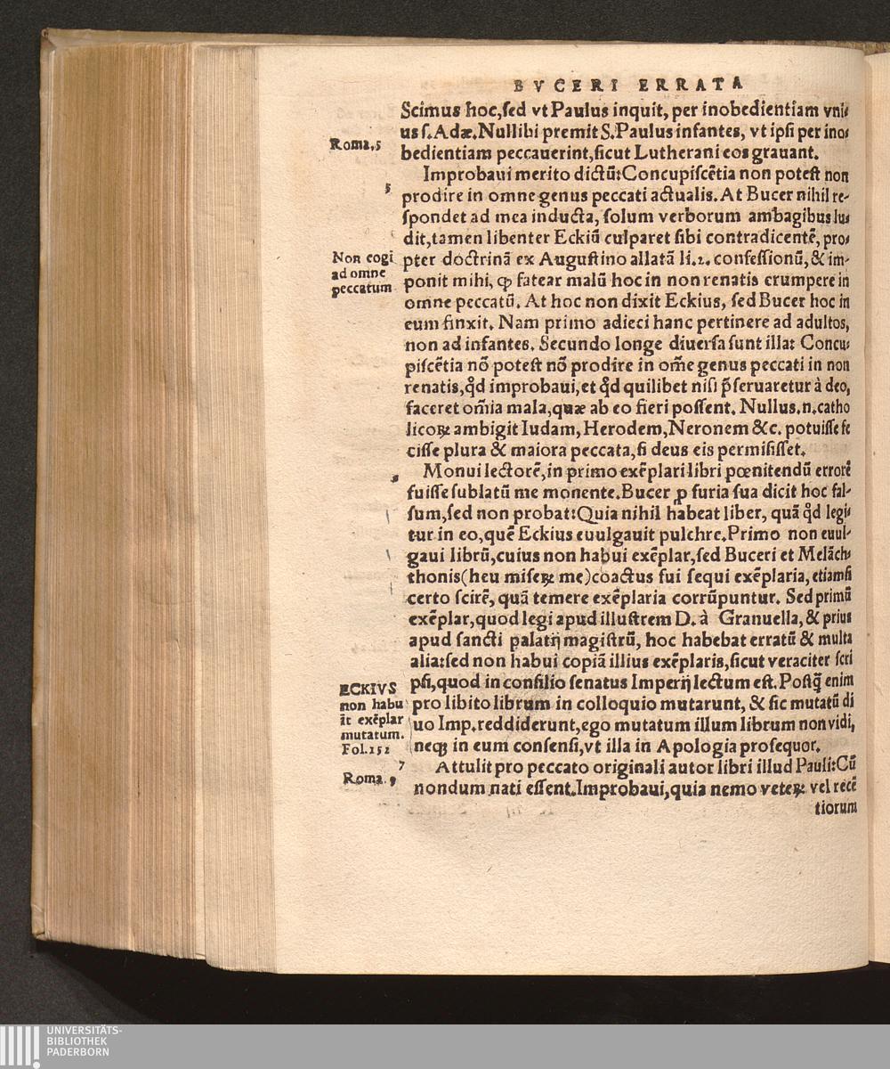 Replica Ioan. Eckii Adversvs Scripta secunda Buceri apostatæ super actis Ratisponæ : Accusatur contumacia Buceri nihil respondentis ad obiecta in Apologia ; Oblatio Eckij facta in Apologia fol. 108. hic repetitur