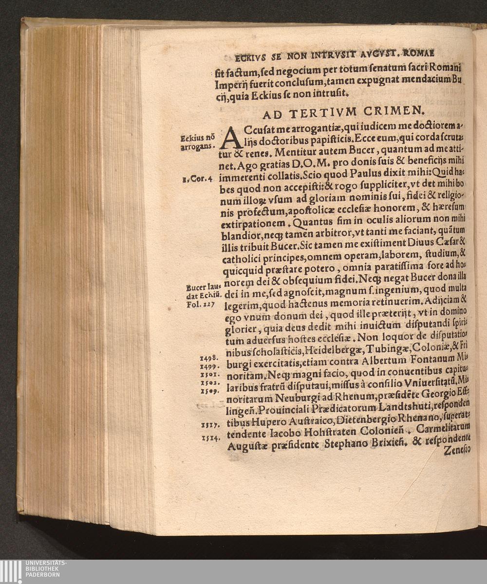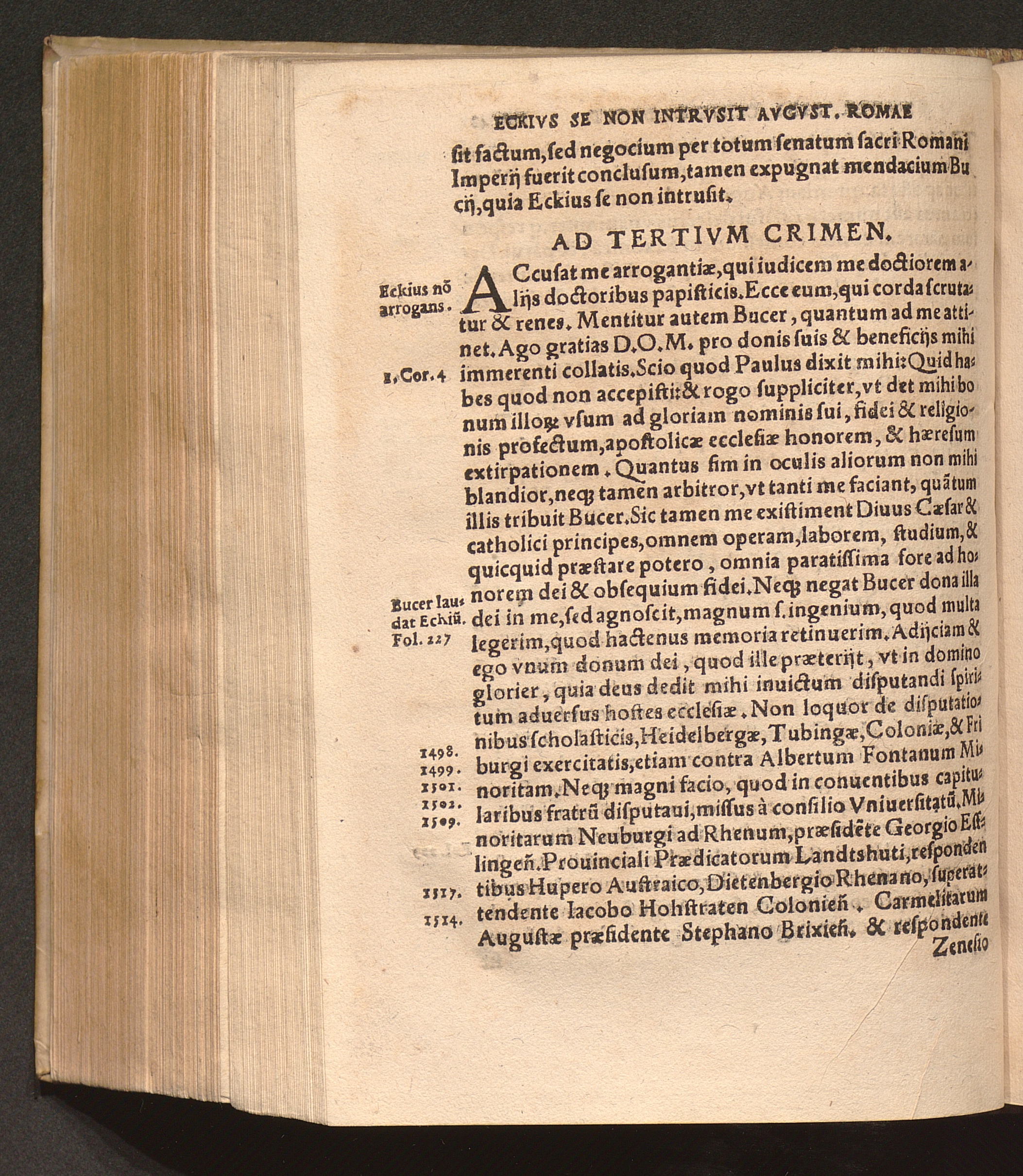 Replica Ioan. Eckii Adversvs Scripta secunda Buceri apostatæ super actis Ratisponæ : Accusatur contumacia Buceri nihil respondentis ad obiecta in Apologia ; Oblatio Eckij facta in Apologia fol. 108. hic repetitur