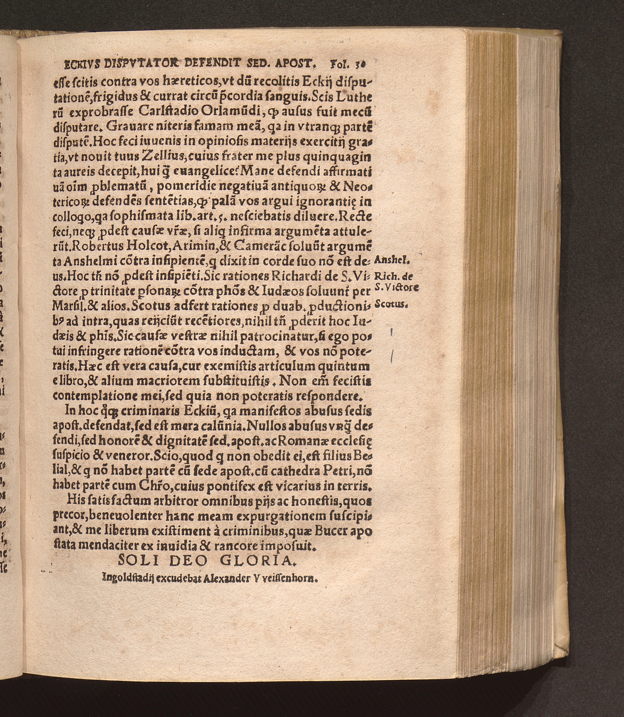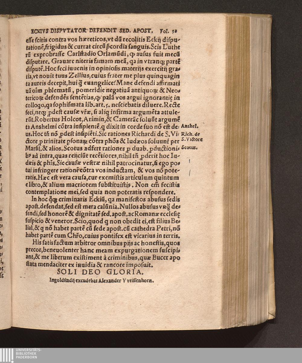 Replica Ioan. Eckii Adversvs Scripta secunda Buceri apostatæ super actis Ratisponæ : Accusatur contumacia Buceri nihil respondentis ad obiecta in Apologia ; Oblatio Eckij facta in Apologia fol. 108. hic repetitur