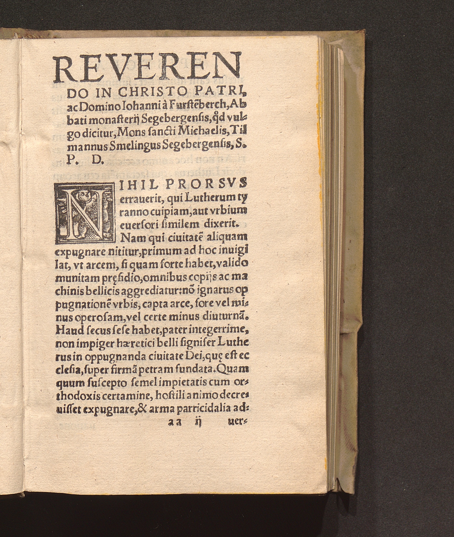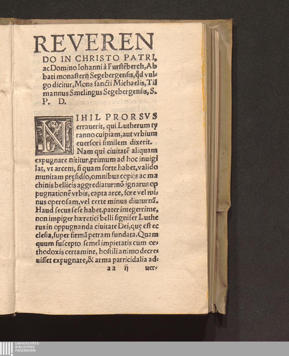 D. Tilman||ni Smelingi Segeber=||gensis de VII. Sacramentis Liber I. in || VII. capita iuxta numerum sacramen||torum digestus, quorum assertionem,|| defensionemq[ue] aduersus hæreticos con||tinet, omnibus Christianis hoc tempo||re haud minus necessarius q[uam] vtilis.||