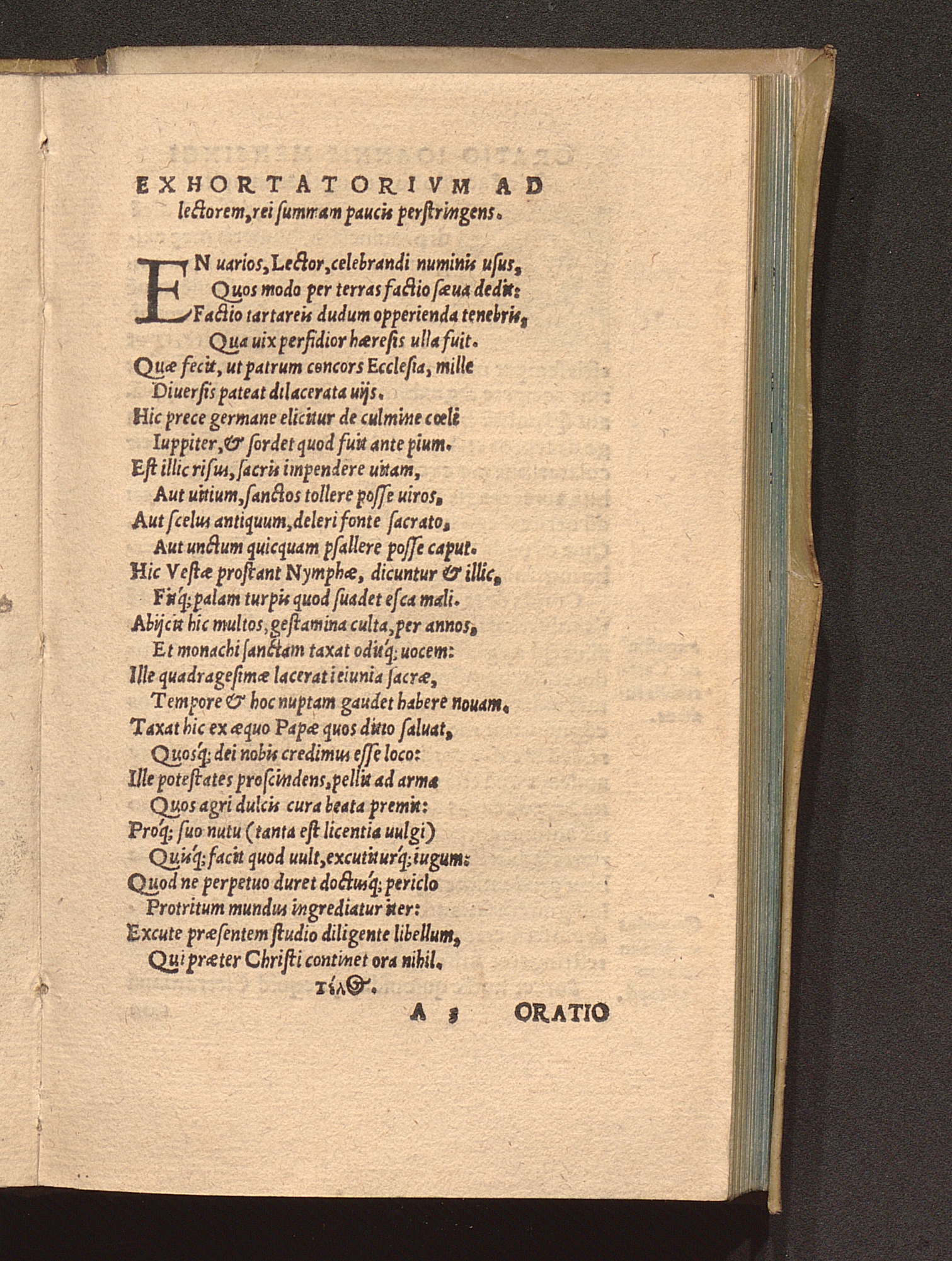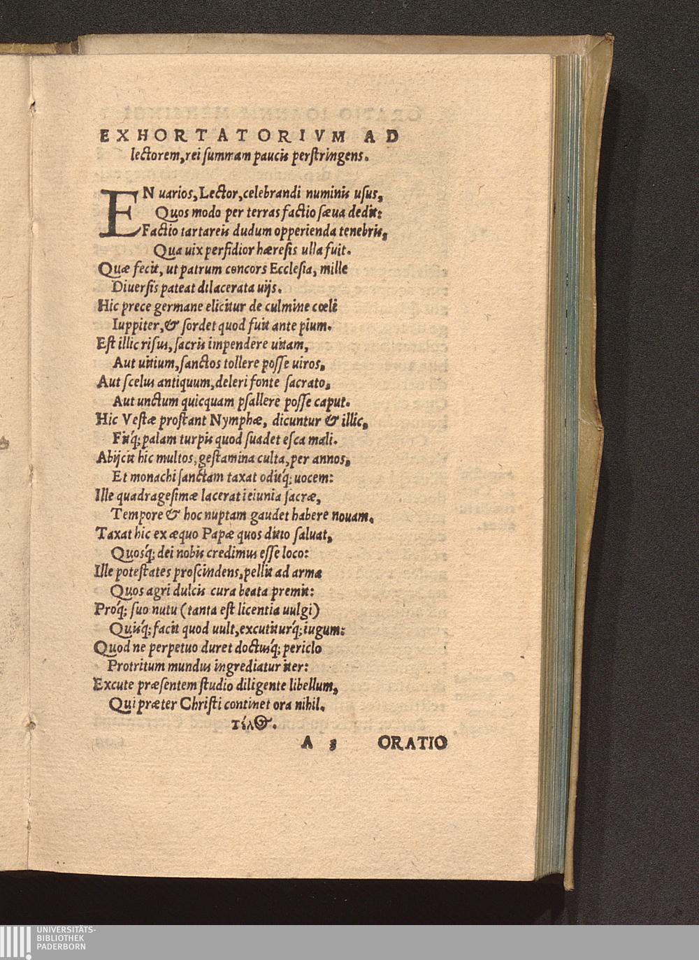 Exhortatorivm Ad lectorem, rei summam paucis perstringens.
