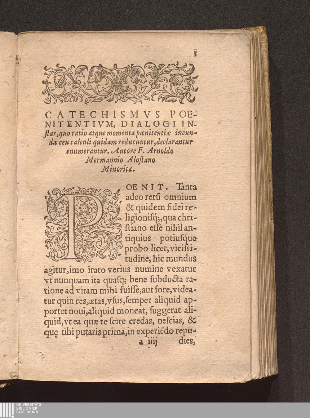 Catechismvs Poenitentivm, Instar Dialogi Qvo Ratio Poenitentiae Inevndae Declaratur / Autore F. Arnoldo Mermannio Alostano Minorita