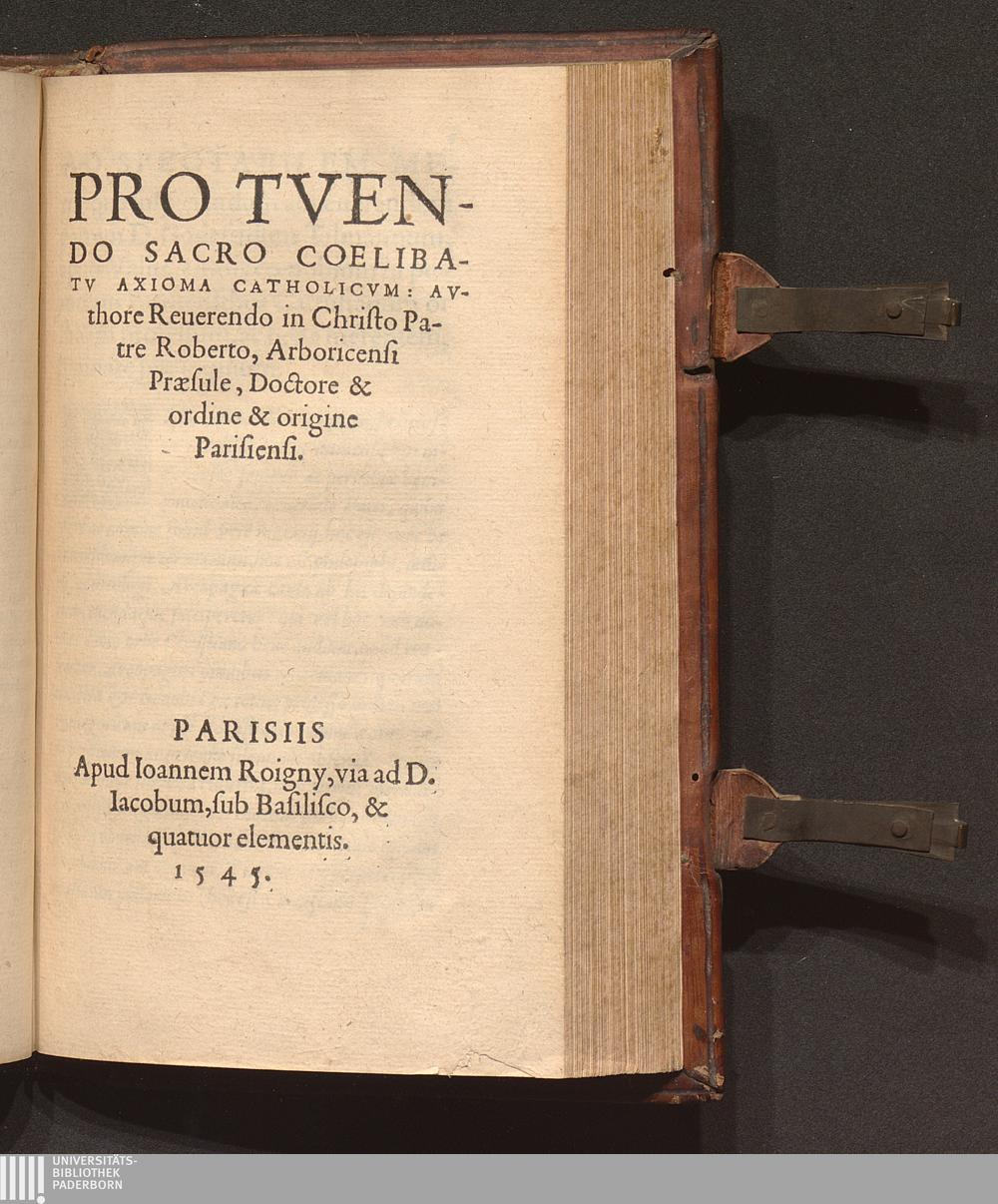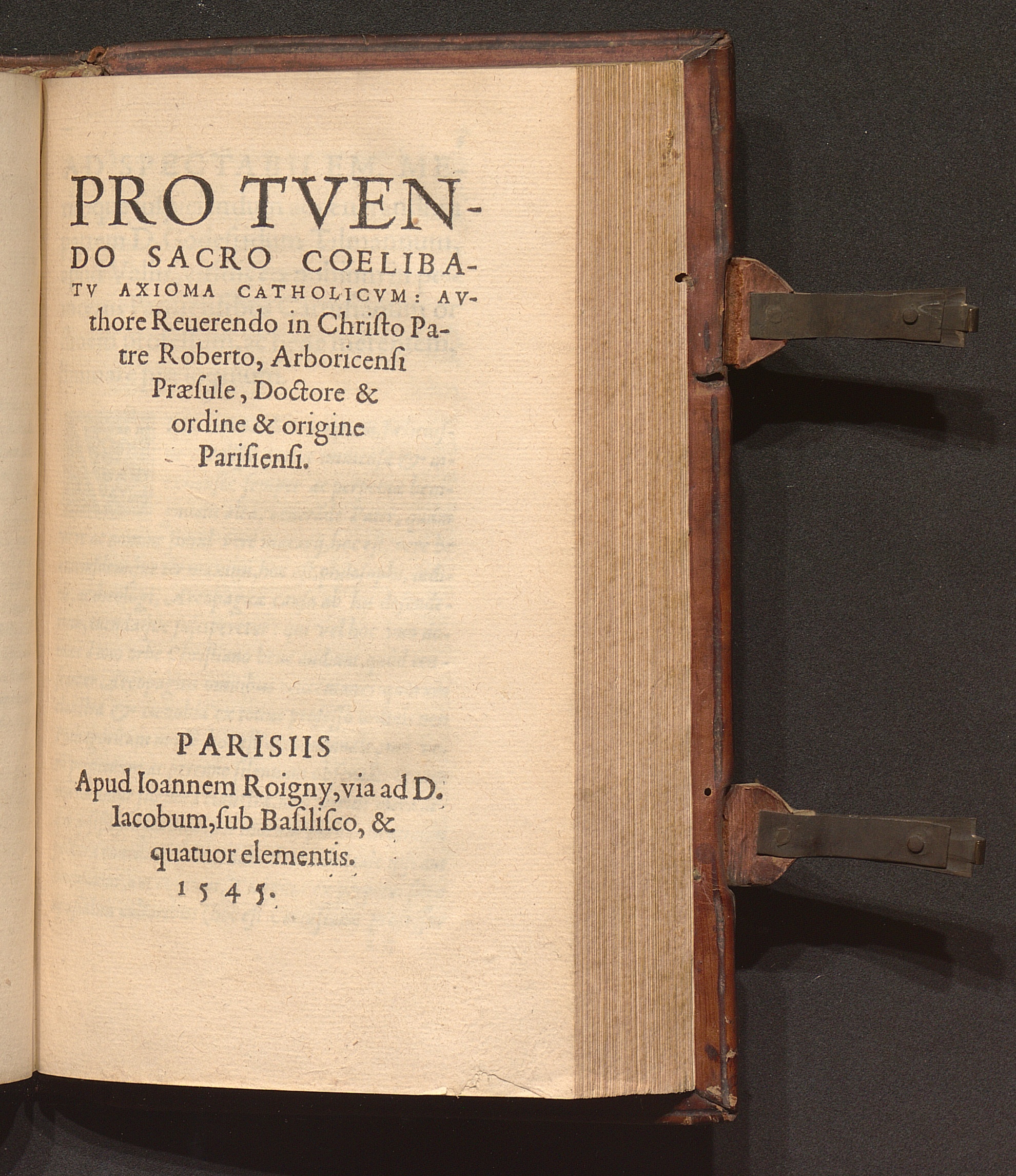 Pro Tvendo Sacro Coelibatv Axioma Catholicvm / Avthore Reuerendo in Christo Patre Roberto, Arboricensi Præsule, Doctore & ordine & origine Parisiensi