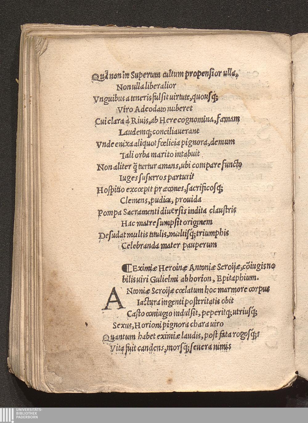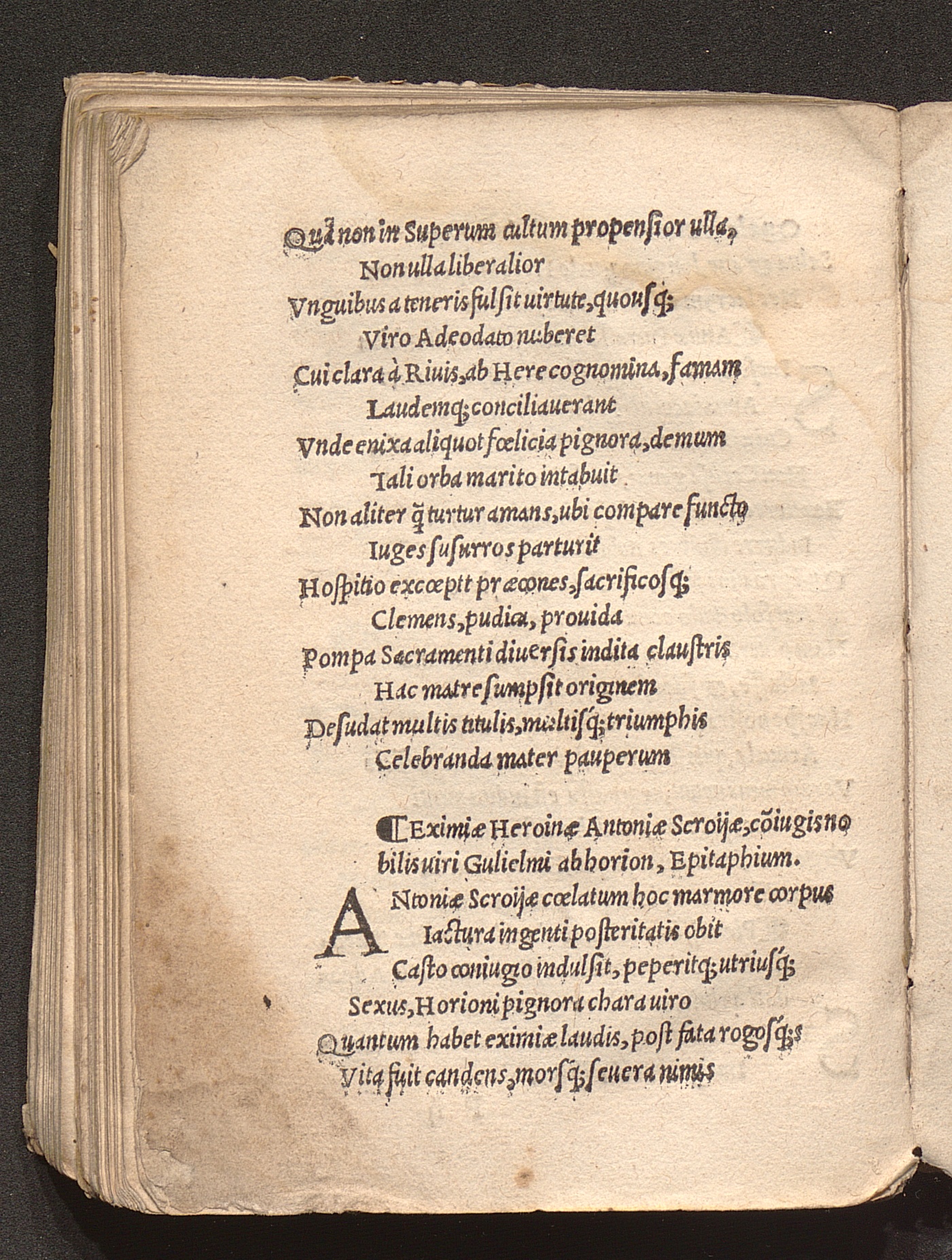 Eximiae Heroinae Antoniae Scroijae, co[n]iugis nobilis uiri Gulielmi abhorion, E[...]