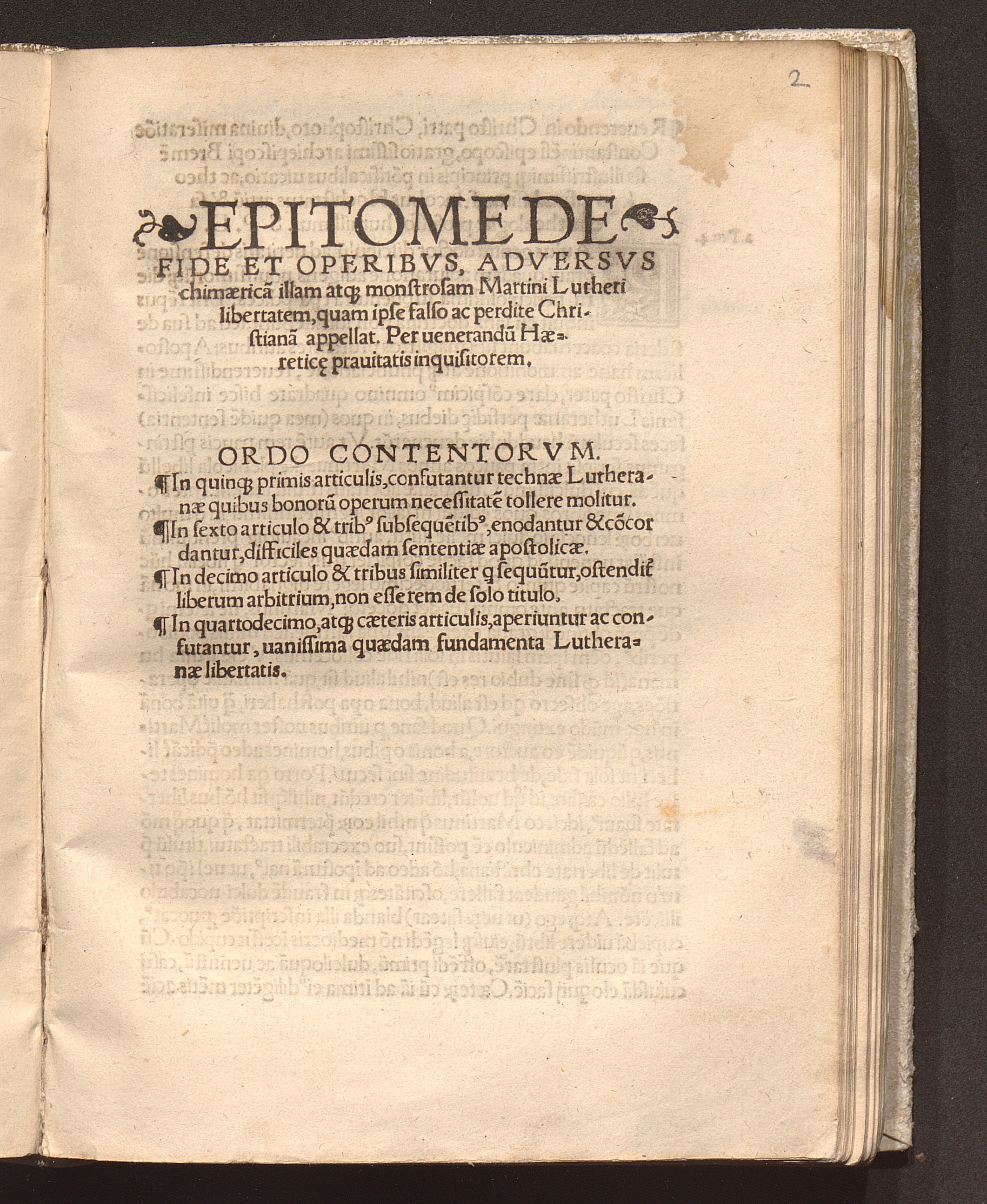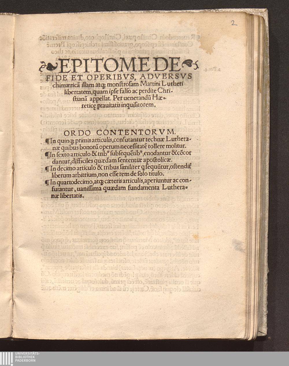 Epitome De Fide Et Operibvs, Adversvs chimærica[m] illam atq[ue] monstrosam Martini Lutheri libertatem, quam ipse falso ac perdite Christiana[m] appellat / Per uenerandu[m] Hæretic[a]e prauitatis inquisitorem