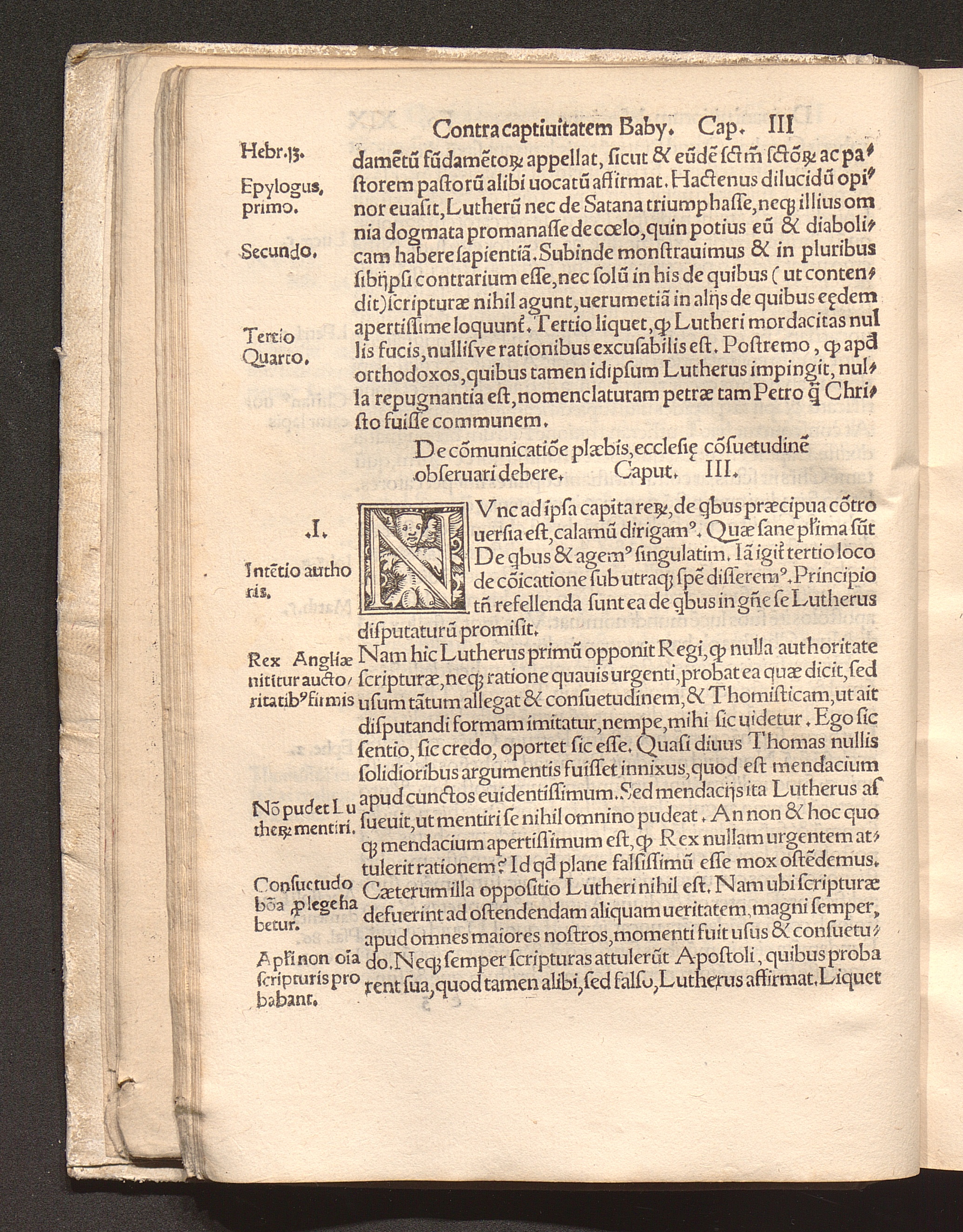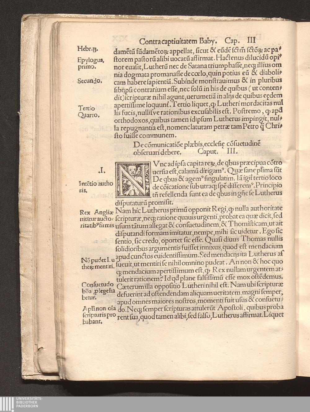 Defensio Regie || assert[i]o[n]is co[n]tra Ba||bylonicam captiuitate[m] : In qua || respo[n]det pro illustrissimo, eode[m]q[ue] doctissimo Anglor[um] Rege Henrico VIII. fidei defensore, ad maledice[n]tissimu[m] Martini || Lutheri libellu[m], in eu[n]de[m] Rege[m] scriptu[m] plusqua[m] impude[n]tissime / per Reue-||rendu[m] patrem et D. D. Ioanne[m] Roffensem Episcopu[m].