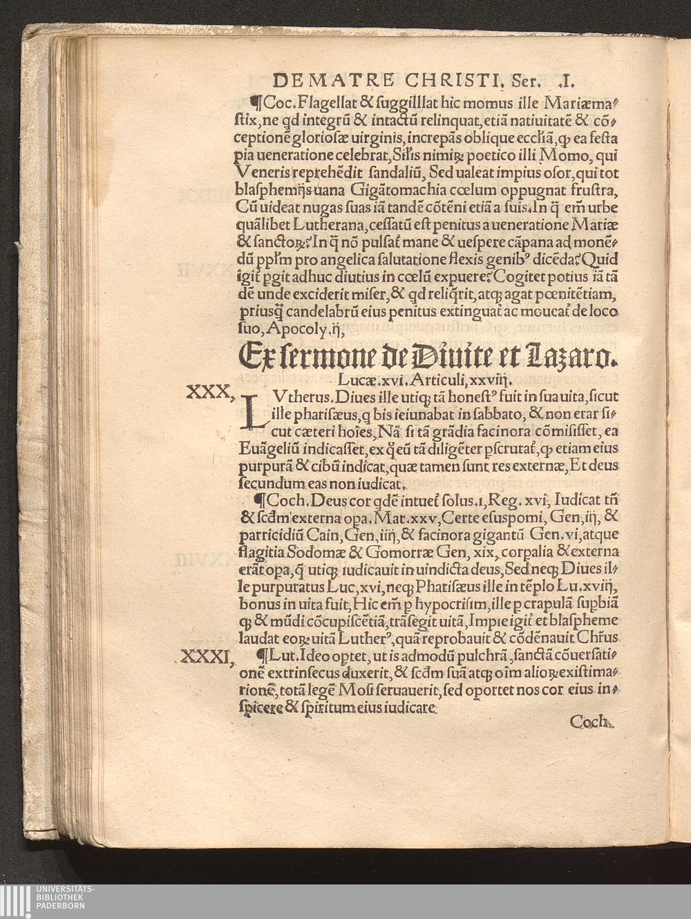 Confvtatio. XCI. articulorum: e tribus Martini Lutheri Teuthonicis sermonibus excerptorum / Authore Iohanne Cochlæo, uiro eruditissimo, ad Christi, beatæ Mariæ uirginis, o[mn]i[u]mq[ue] sanctor[um] honore[m] ac gloria[m]
