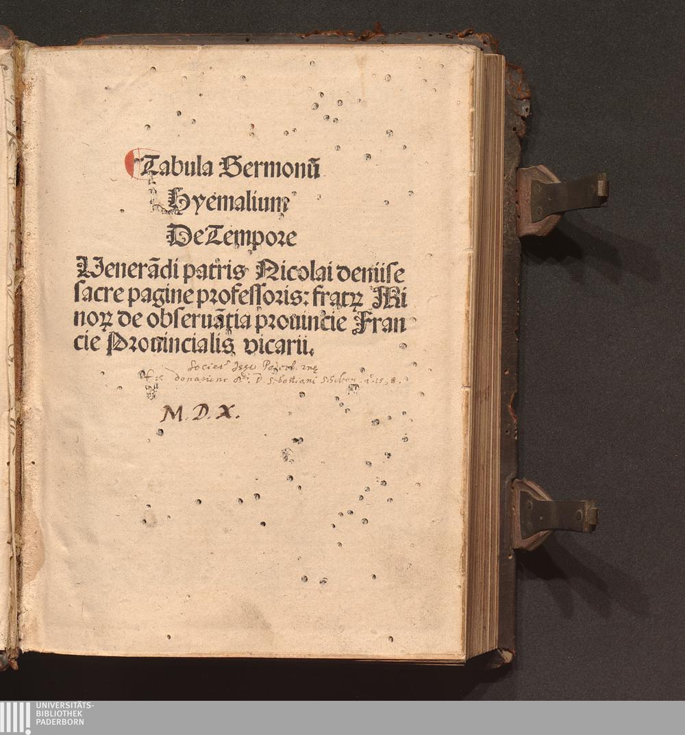 Sermones de Sa[n]ctis Hyemales, Estiuales, De festiuitatibus Jesu christi, Beate virginis et alior[um] Sanctor[um] ... Venera[n]di patris, fratris Nicolai deniise Ordinis Minor[um] de obseruantia prouincie francie prouincialis vicarii