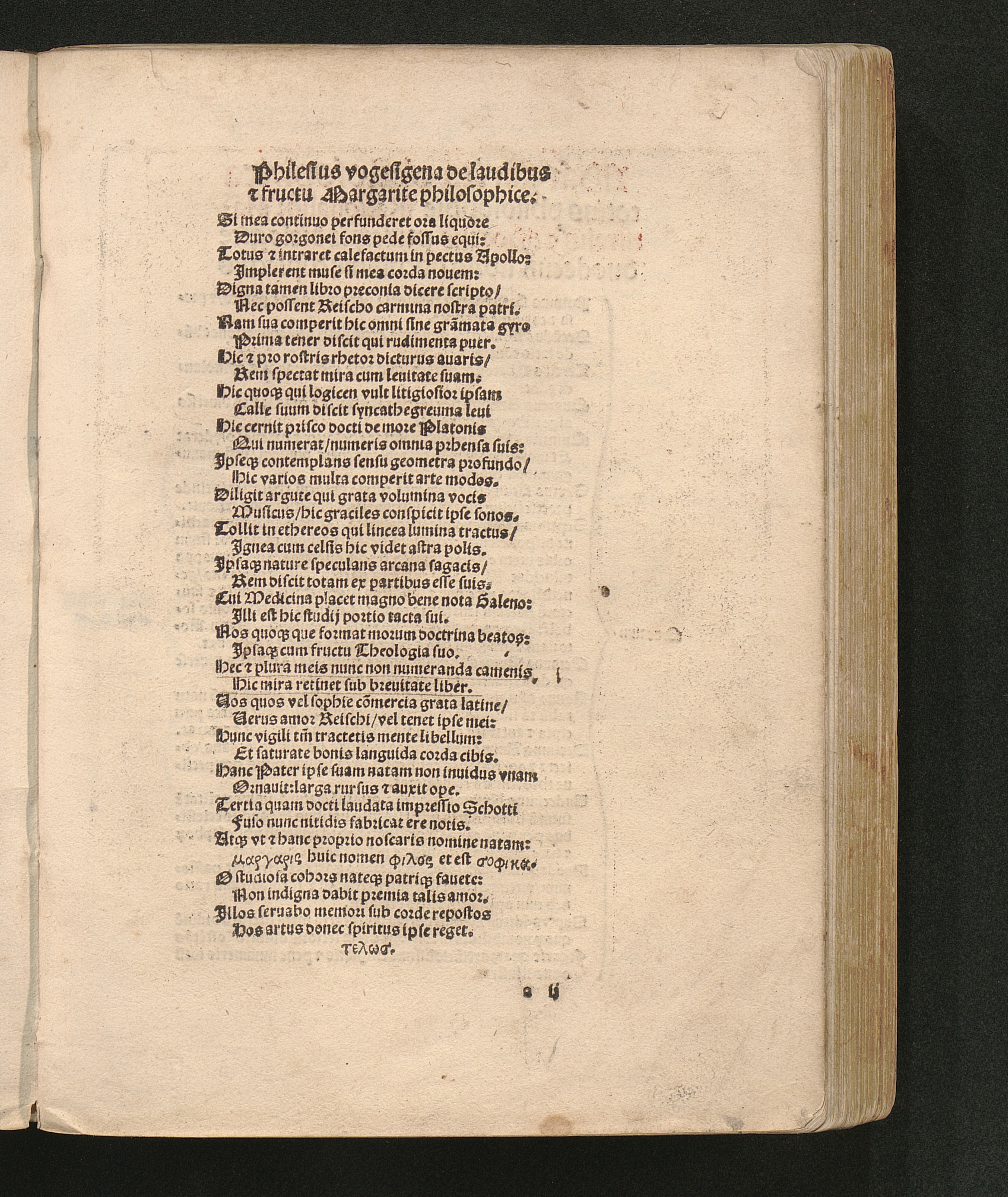 Jn eminentem Margaritam artifici situ cyclopediam effingentem Jacobi Philomusi oratoris poeteq[ue] laureati Epigramma.
