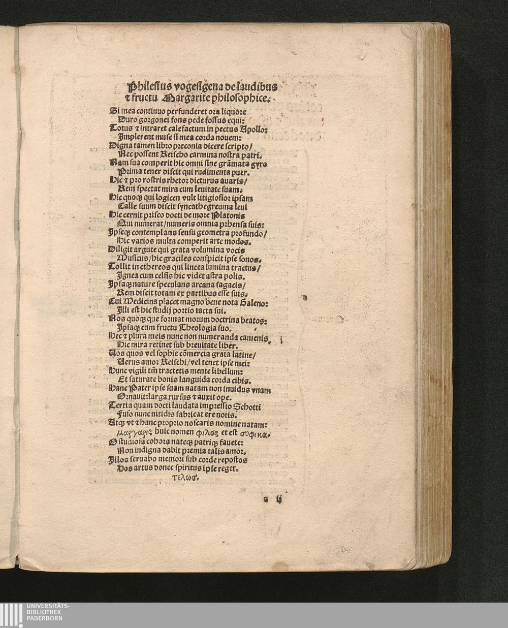 Philesius vogesigena de laudibus [et] fructu Margarite philosophice.