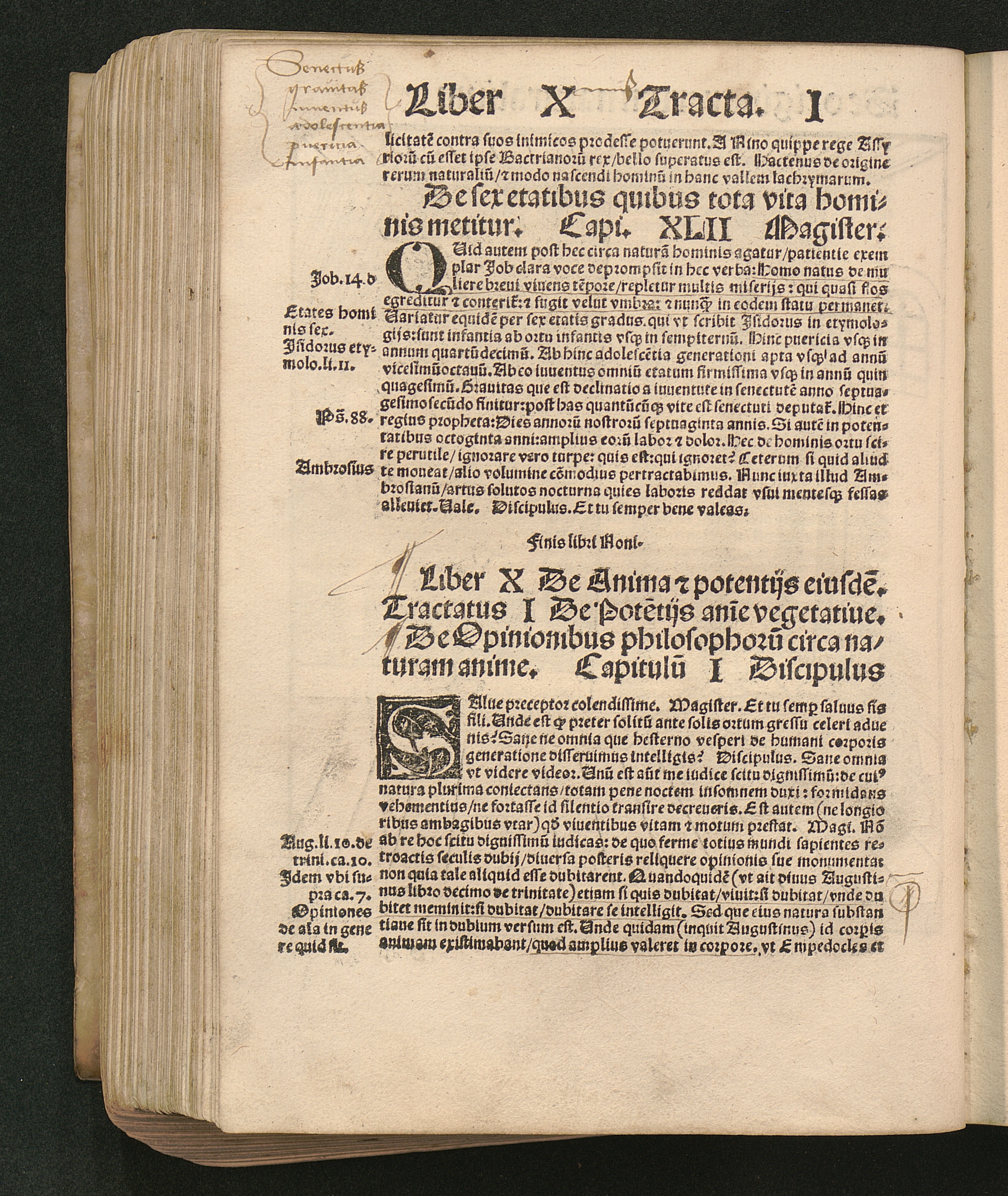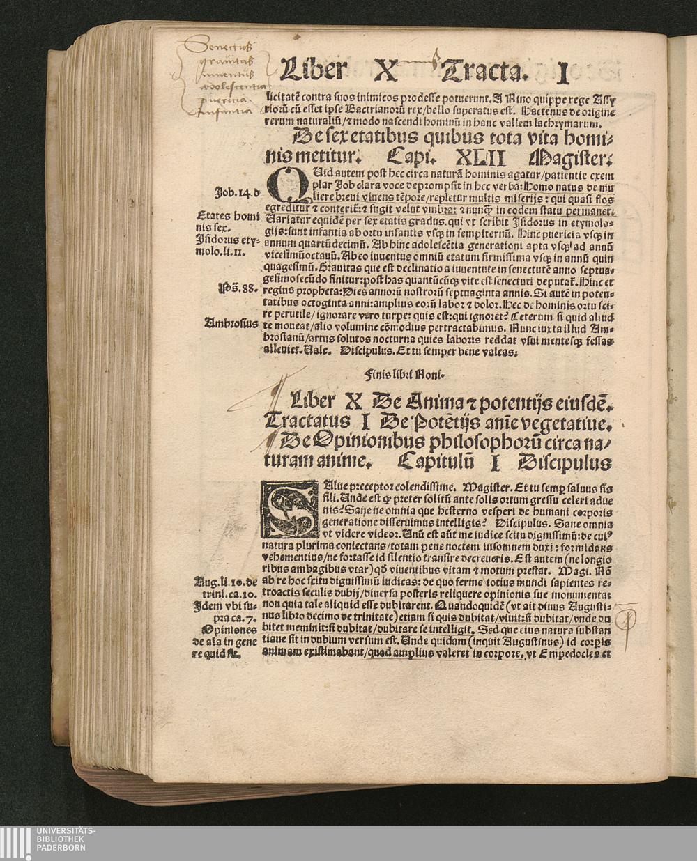 Decimus Anime vegetatiue [et] sensitiue potentias/ organa/ obiecta [et] operationes[...]