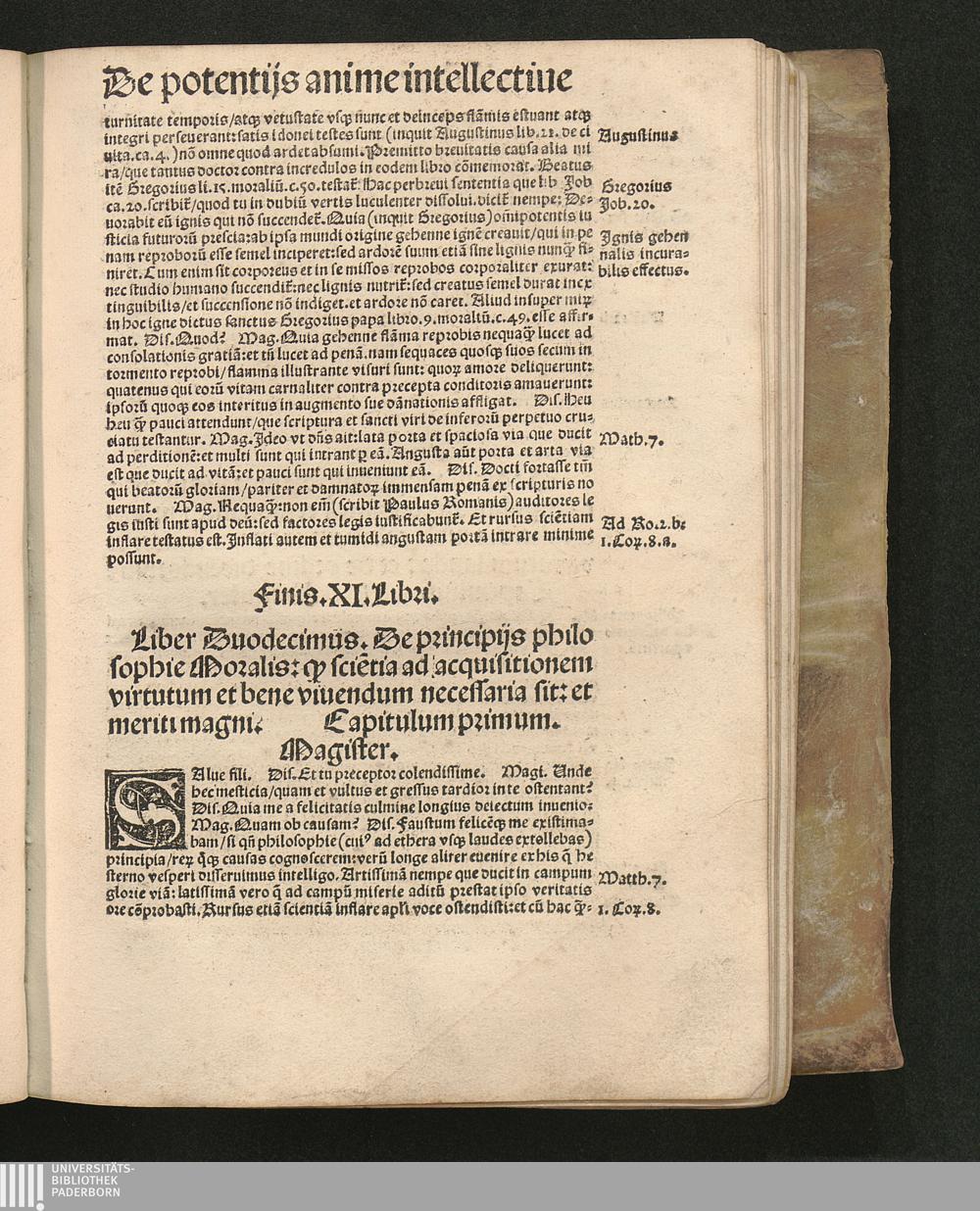 Undecimus Anime rationalis origine[m]/ natura[m]/ immortalitate[m] futuru[m] statu[m]: tam in miserijs infernalibus q[uod] gaudijs celestibus per noue[m] ca[...]pos inuestigat: [et] ob id multoru[m] philosopho[rum] [et] theologoru[m] positiones de natura anime enumerat.