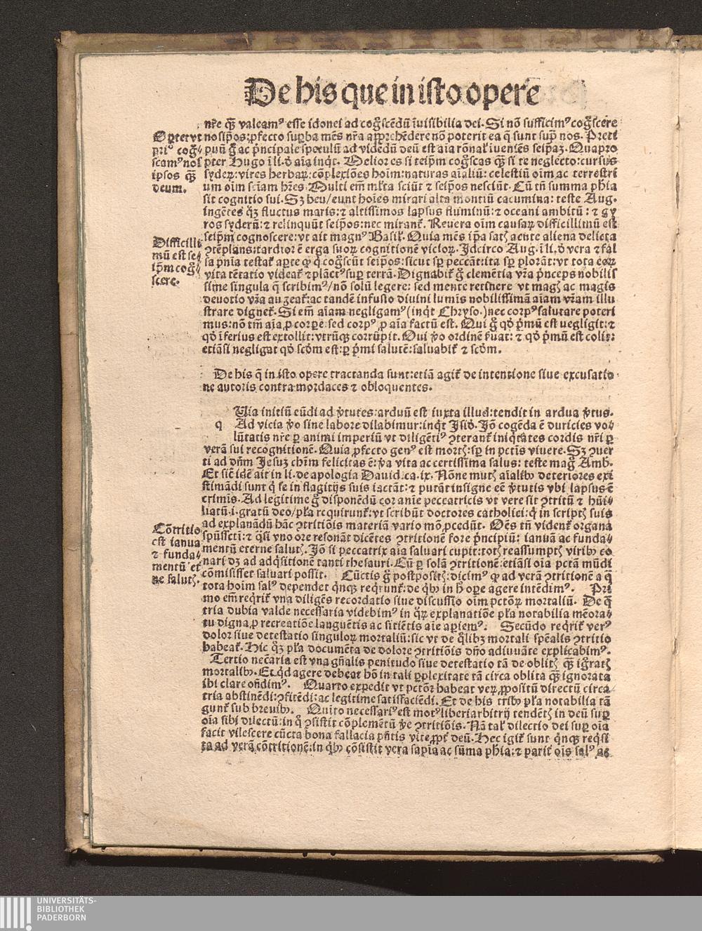 De his q[ui] in isto opere tractanda sunt: etia[m] agit[ur] de intentione siue excusatione[...]
