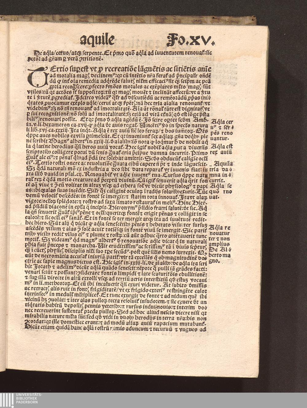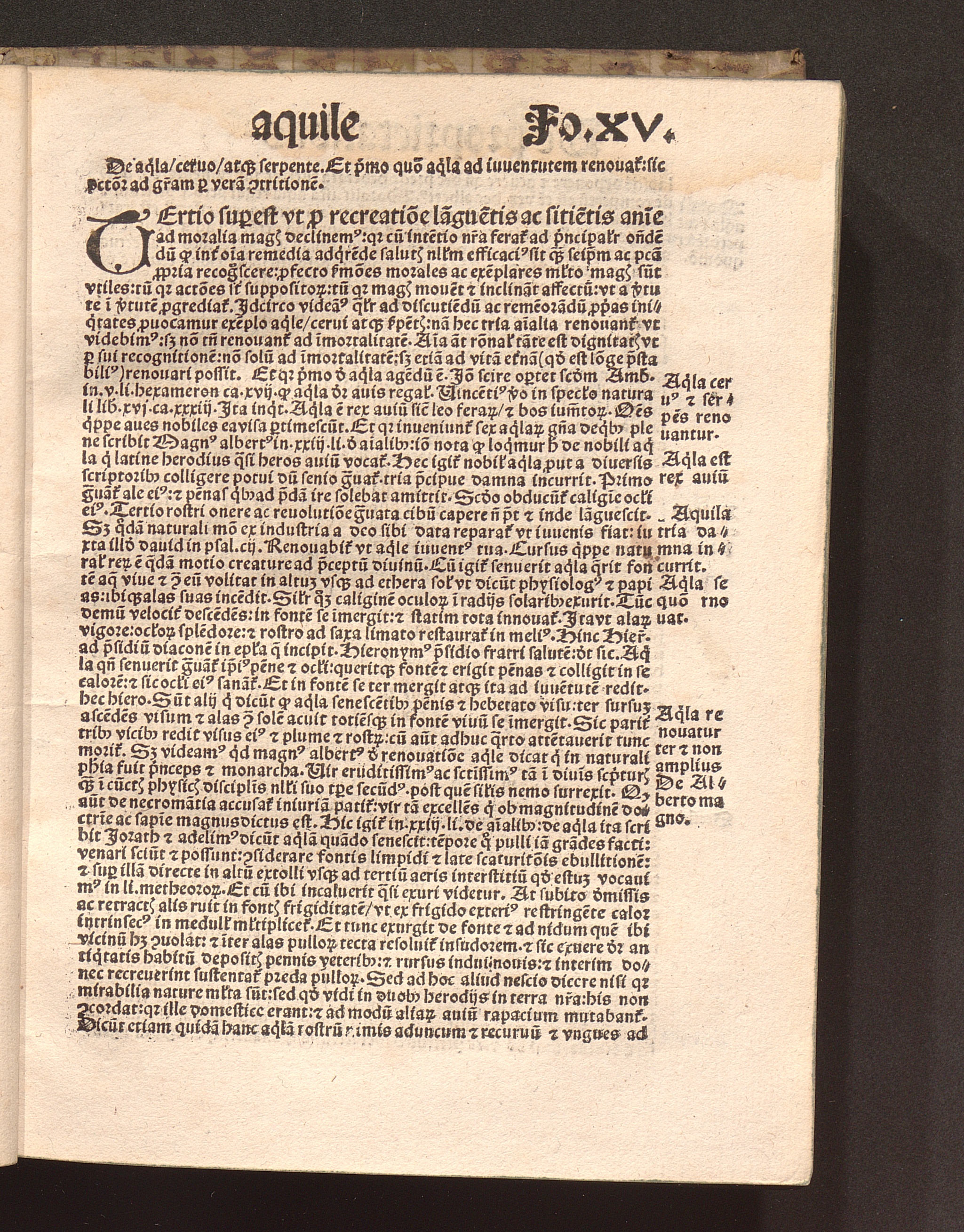 De aq[ui]la/ ceruo/ atq[ue] serpente. Et p[ri]mo quo[d] aq[ui]la ad iuuentutem renouat[ur]:[...]