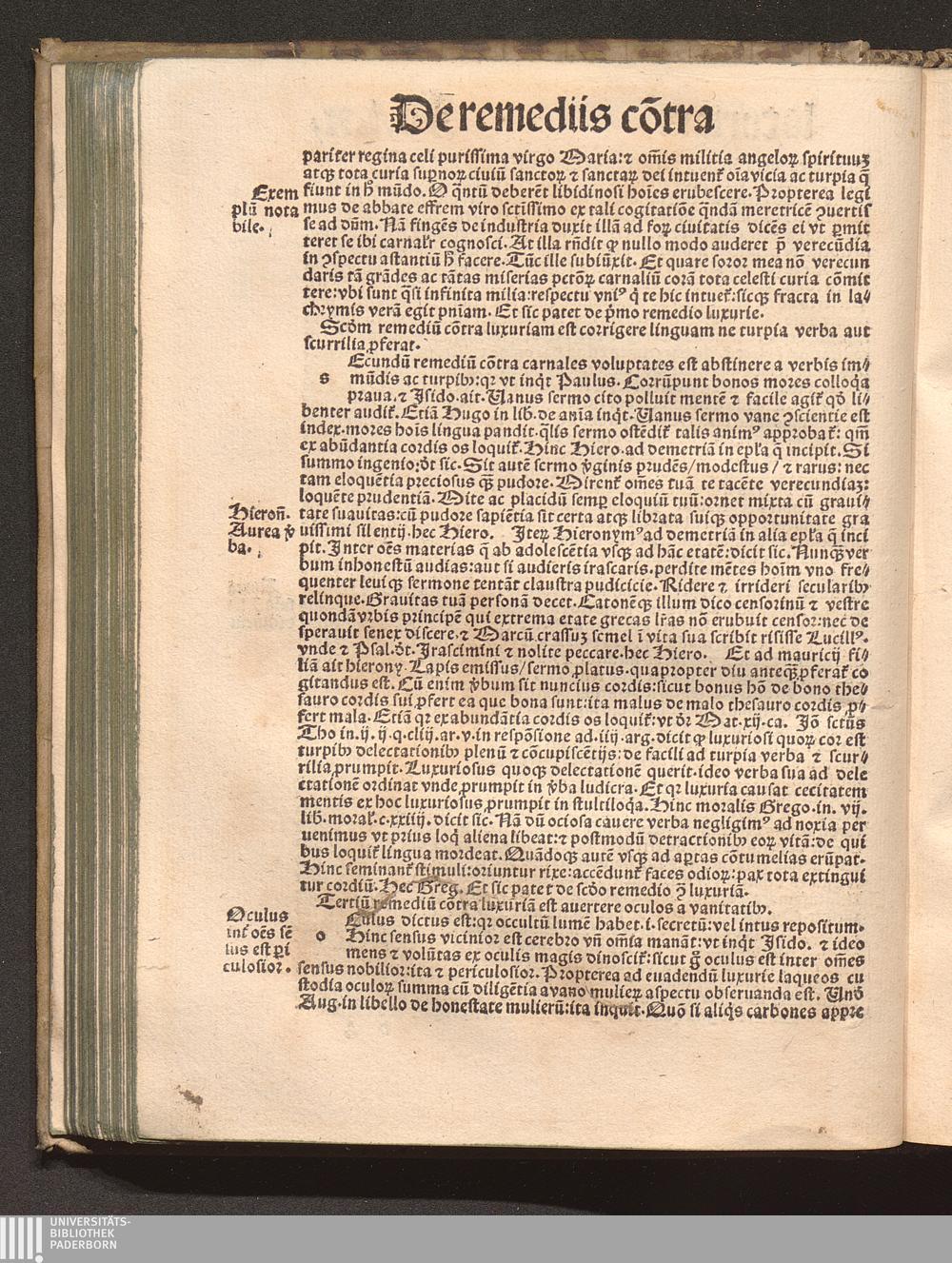 Tertiu[m] remediu[m] co[n]tra luxuria[m] est auertere oculos a vanitatib[us].