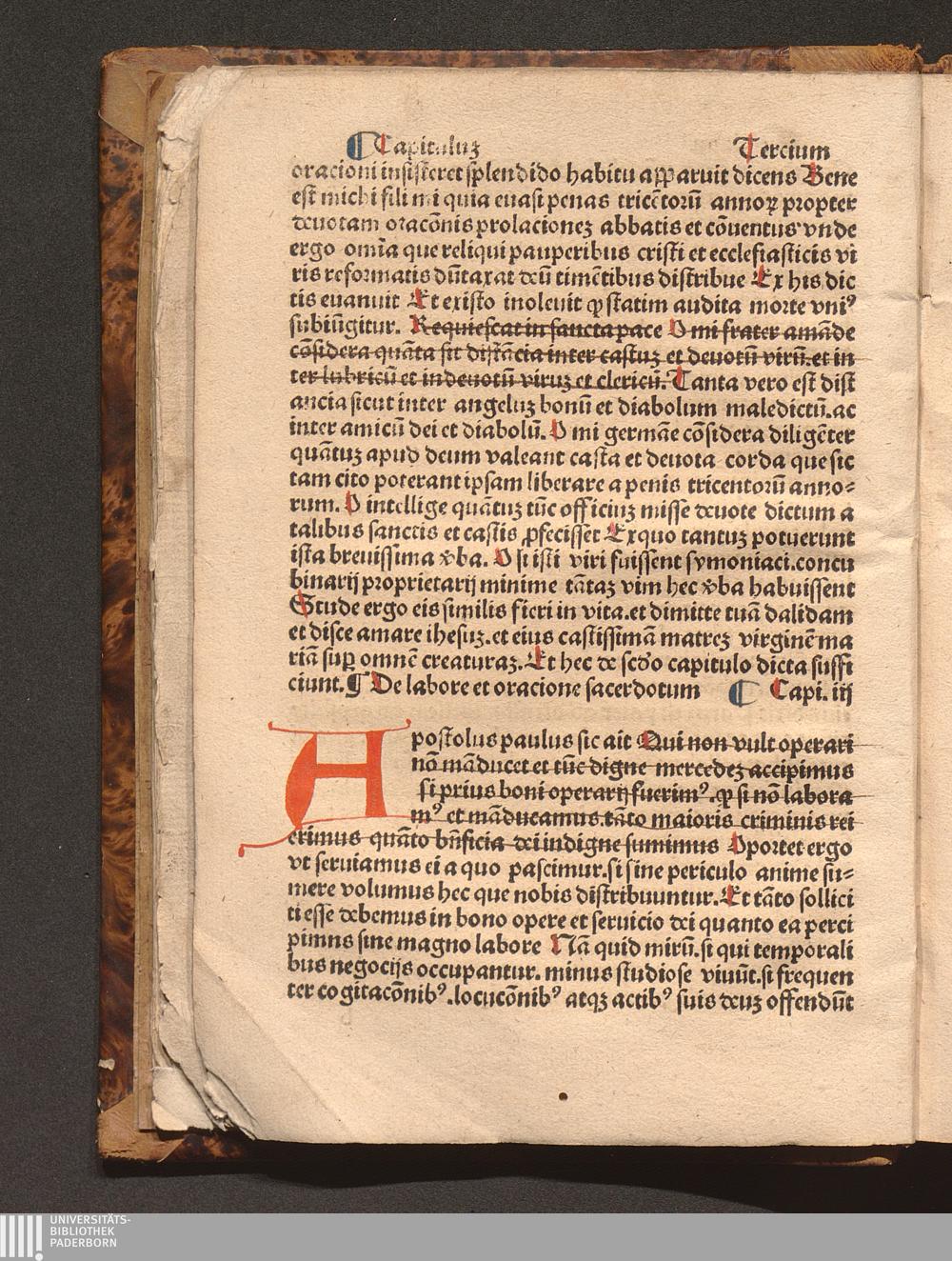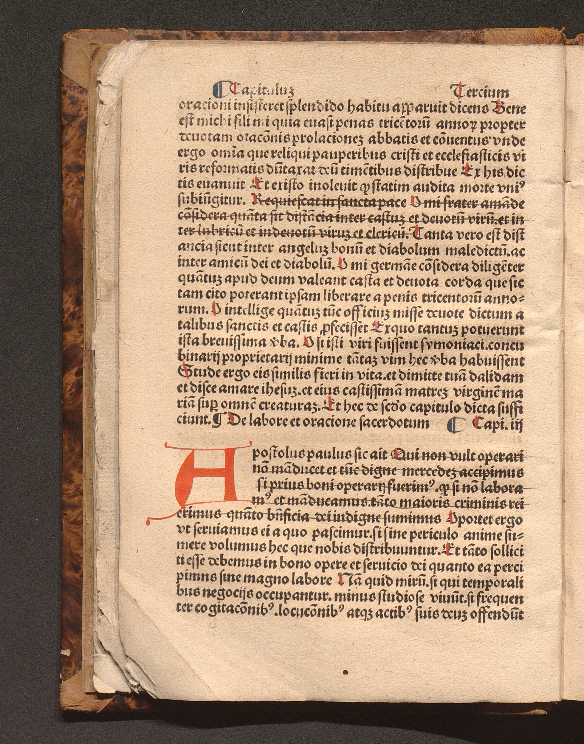 Capitulu[m] Terciu[m] de labore [et] or[aci]one sacerdotu[m]
