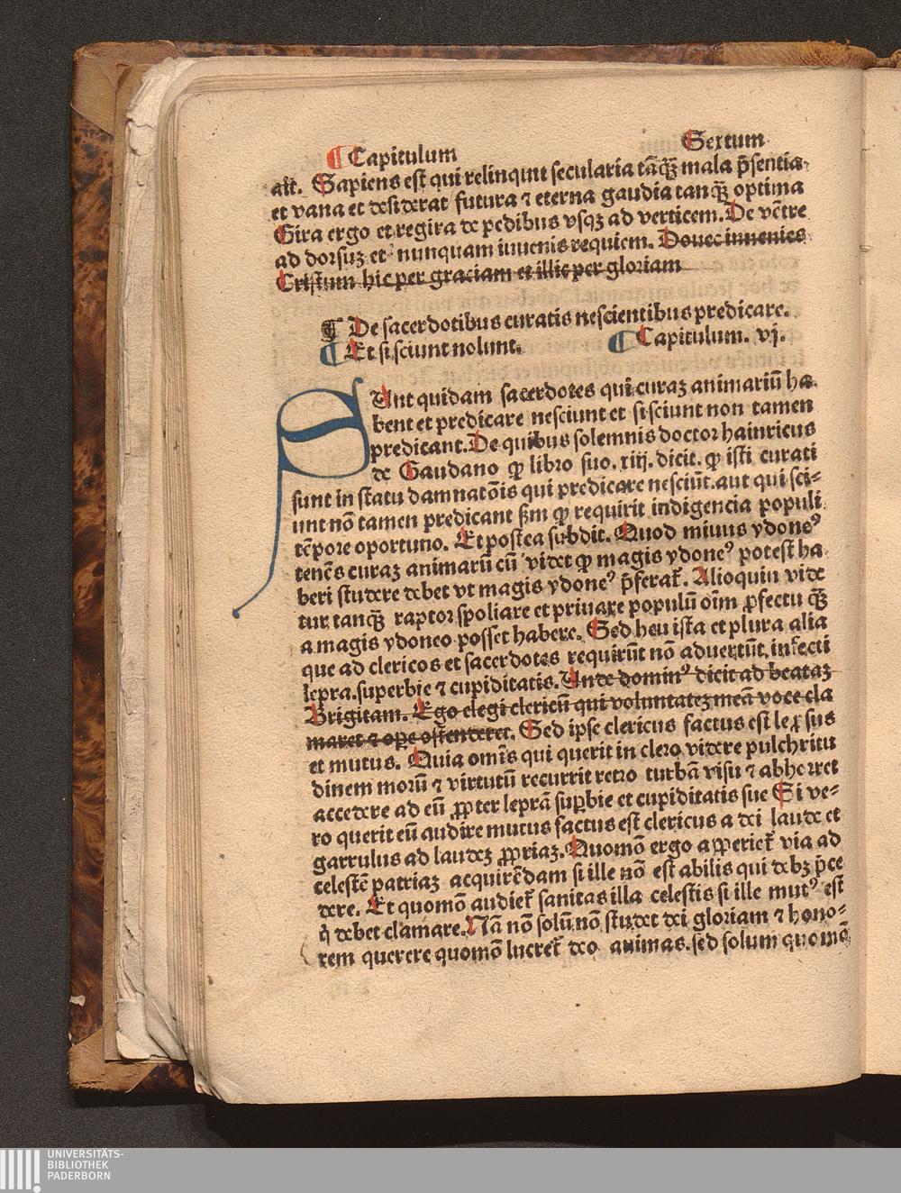 Capitulu[m] sextum. De sacerdotibus curatis nescientibus predicare. Et si sciunt[...]