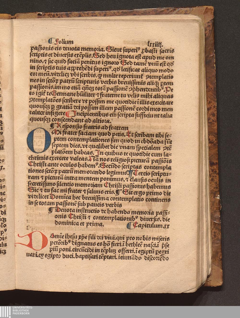 Ca. xx. Deuota i[n]structio de habe[n]da memoria passio[n]is [Christ]i [et] [con]te[m]plat[i]o[n]ib[us][...]