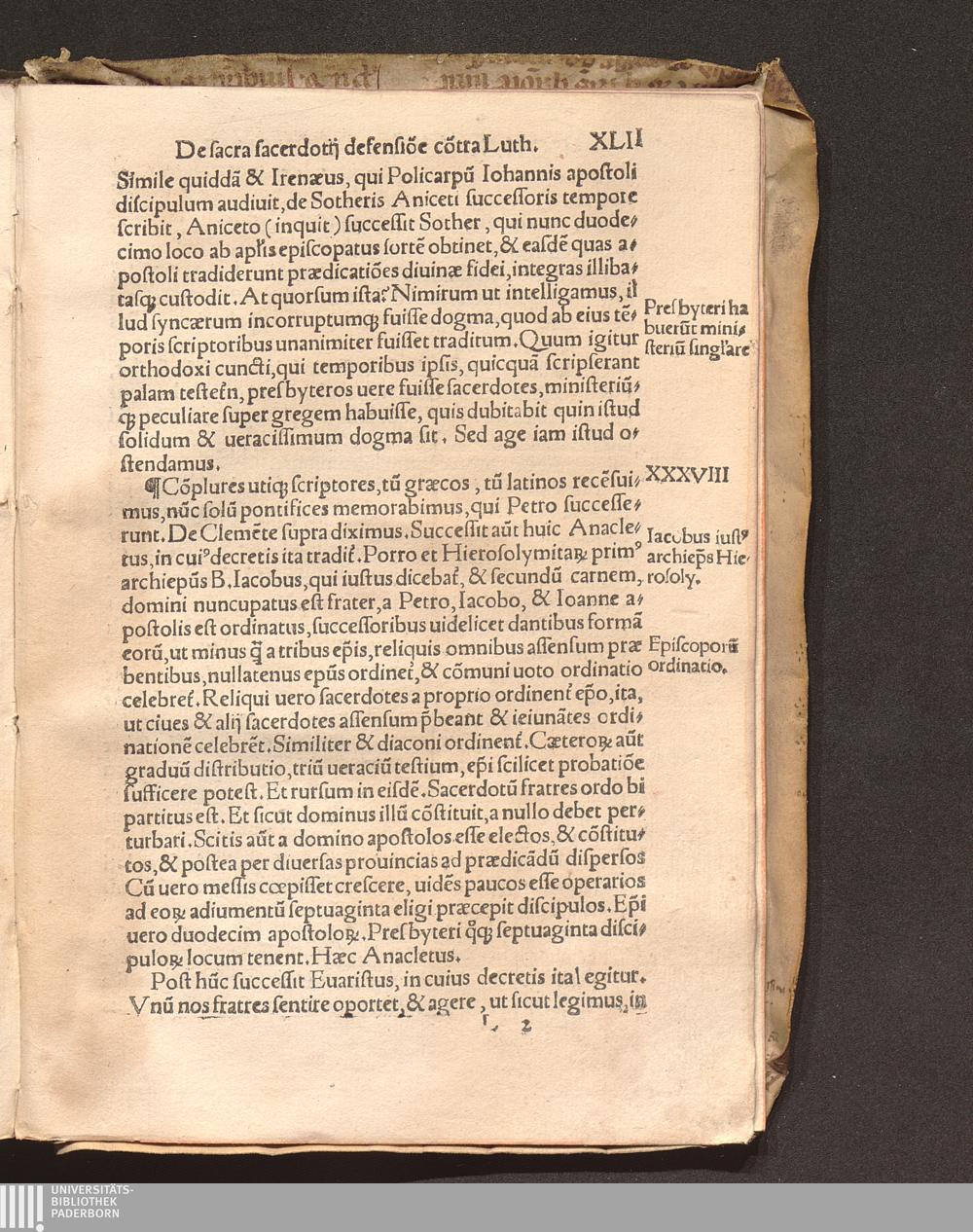 Sacri sacerdotij defensio co[n]tra Lutheru[m] : Cum tabula & repertorio tractato[rum] / per Reuerendissimu[m] D. D. Ioannem Roffen[sis]. Episcopu[m], uirum singulari eruditione omnifariam doctissimu[m], iamprimum ab Archetypo euulgata