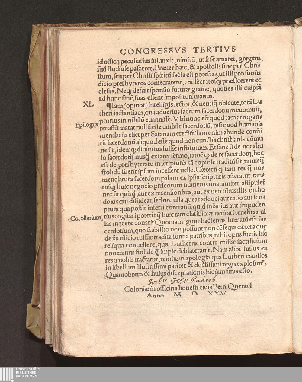 Sacri sacerdotij defensio co[n]tra Lutheru[m] : Cum tabula & repertorio tractato[rum] / per Reuerendissimu[m] D. D. Ioannem Roffen[sis]. Episcopu[m], uirum singulari eruditione omnifariam doctissimu[m], iamprimum ab Archetypo euulgata