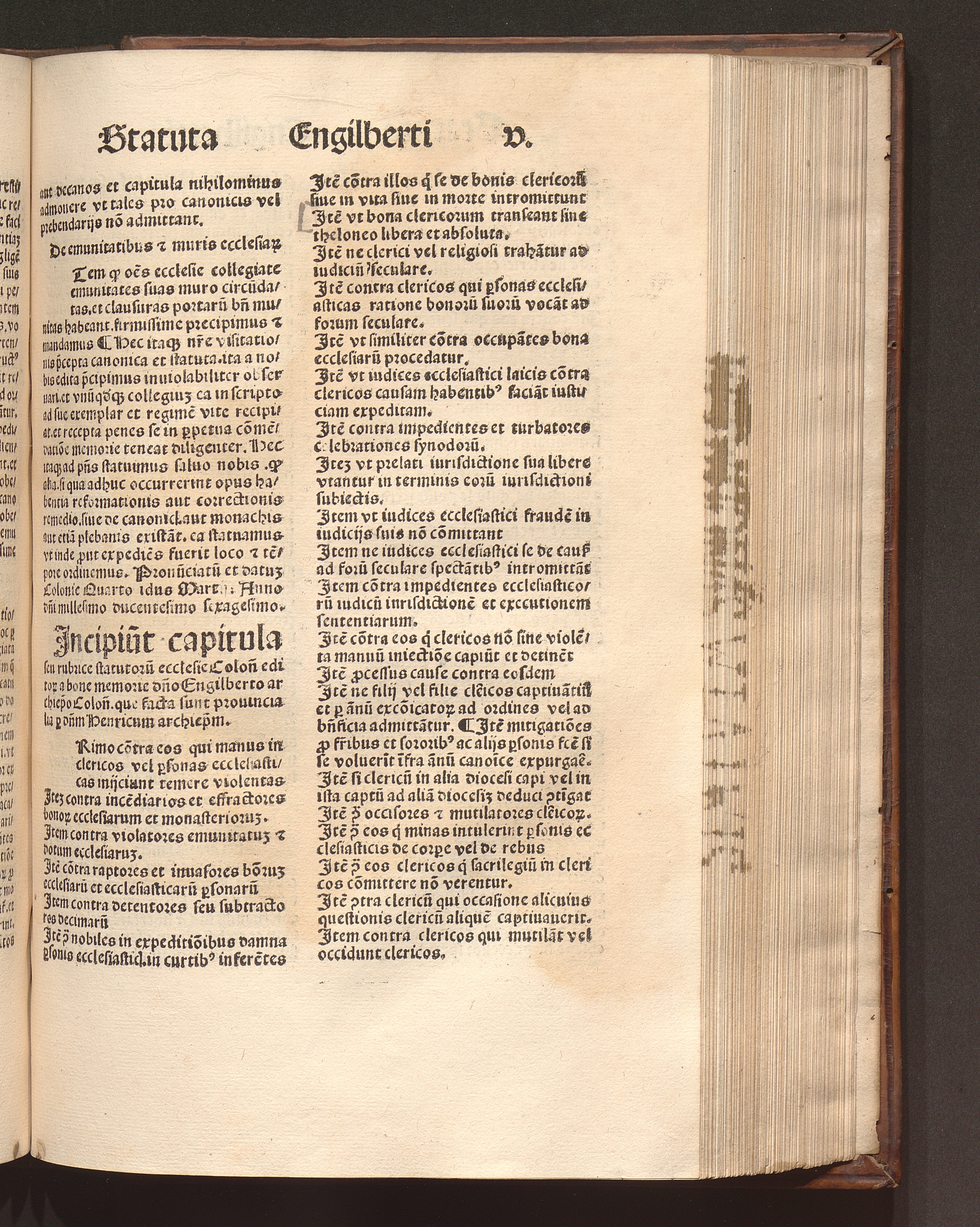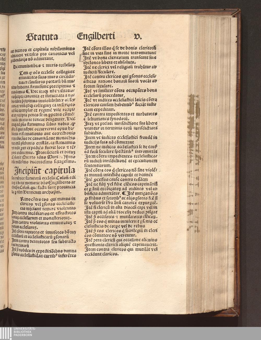 Jncipiu[n]t capitula seu rubrice statutoru[m] ecclesie Colon[iensis] editor a bone[...]
