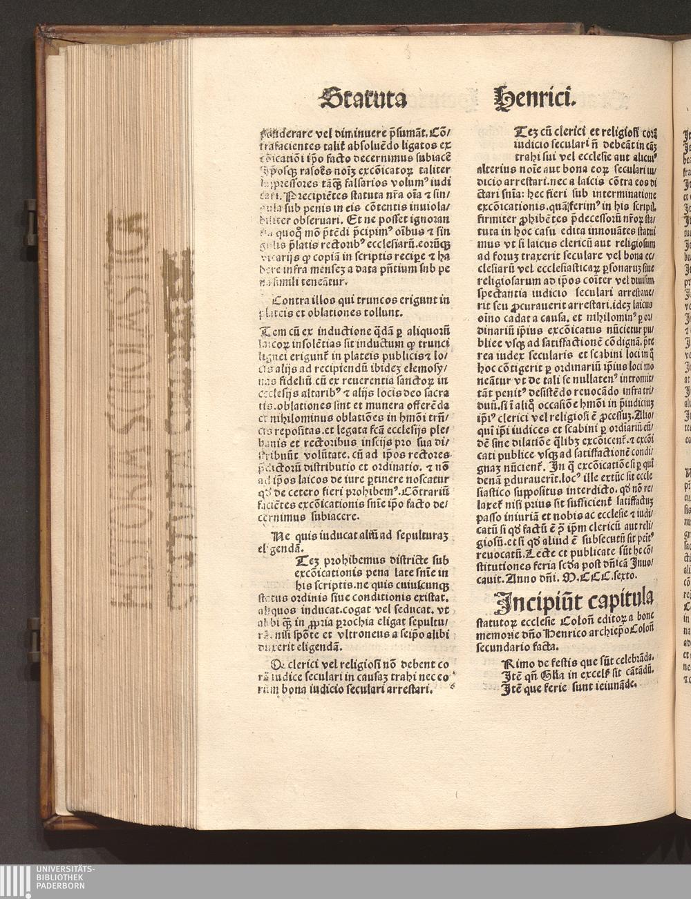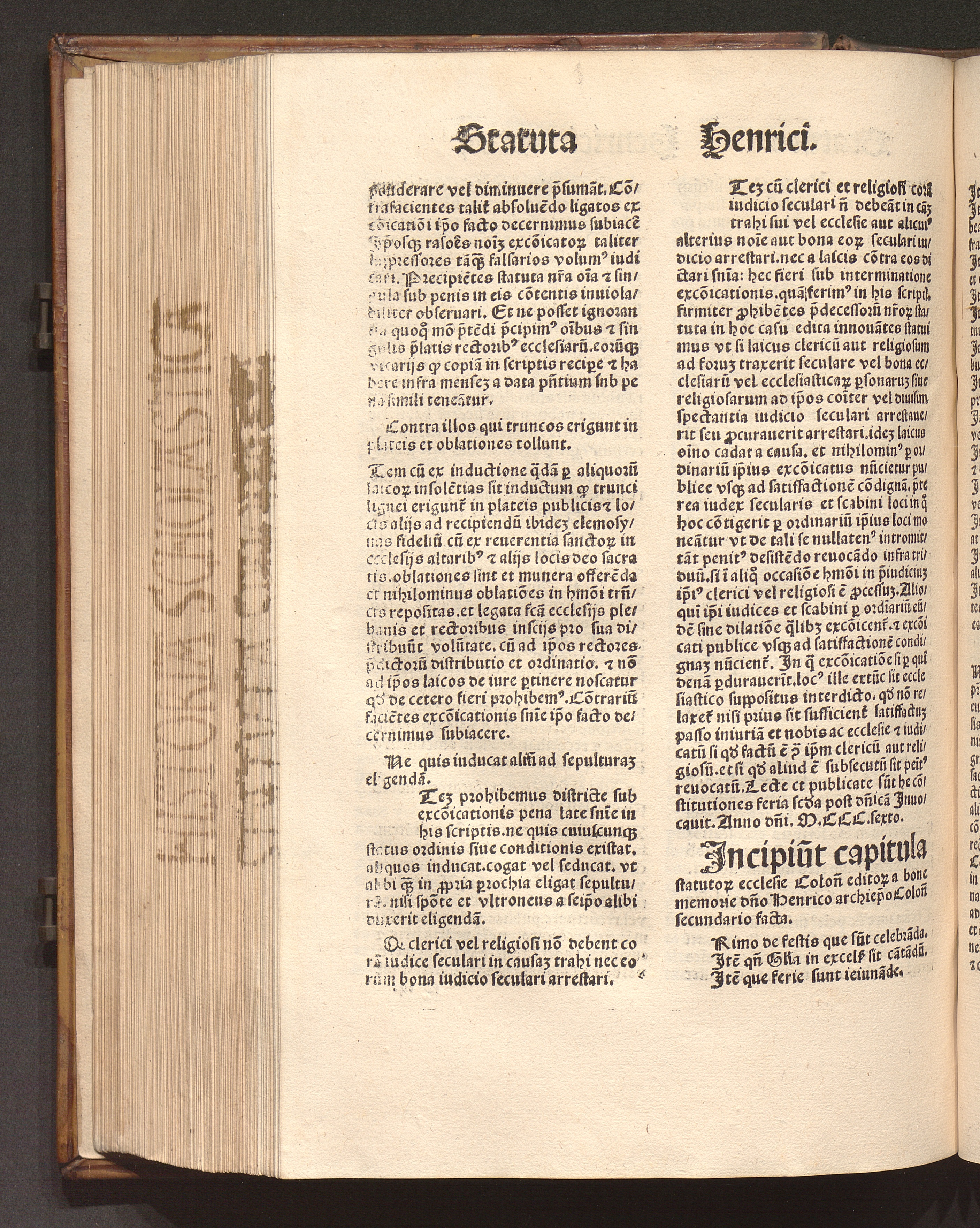 Jncipiu[n]t capitula statuto[rum] ecclesie Colon[iensis] edito[rum] a bone memorie[...]