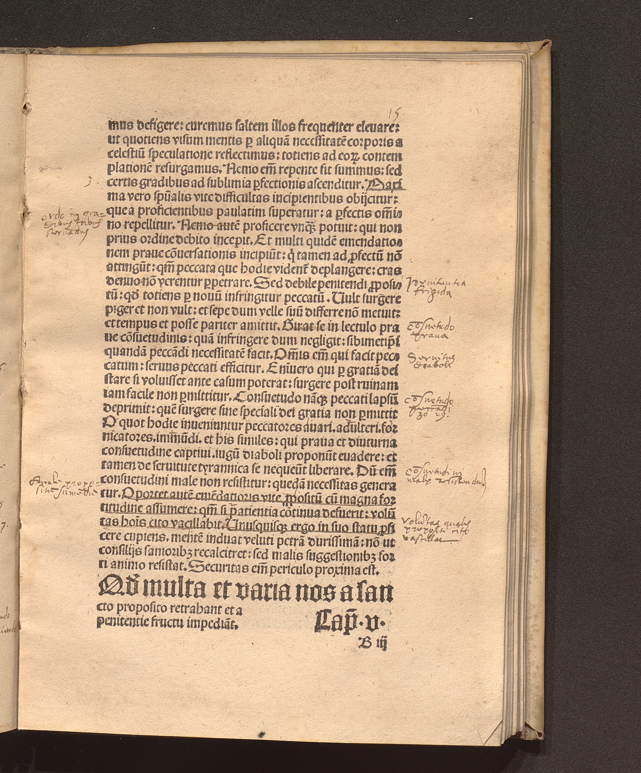 Q[uo]d multa et varia nos a sancro proposito retrabant et a penitentie fructu impedia[n]t. Cap[itulum] v.