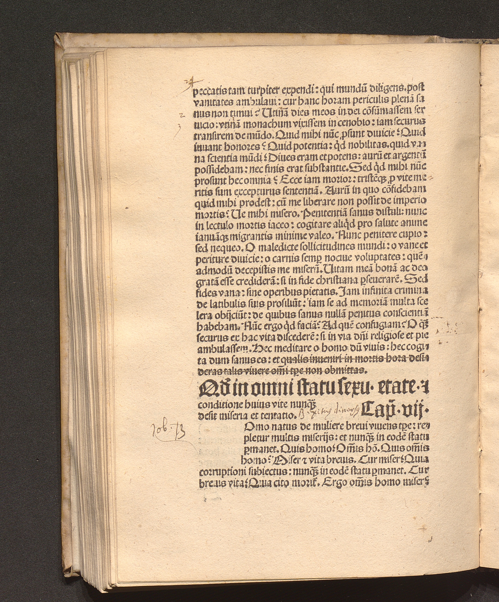Q[uo]d in omni statu sexu etate et conditione huius vite nunq[uam] desit miseria et tentatio. Cap[itulum] vii.