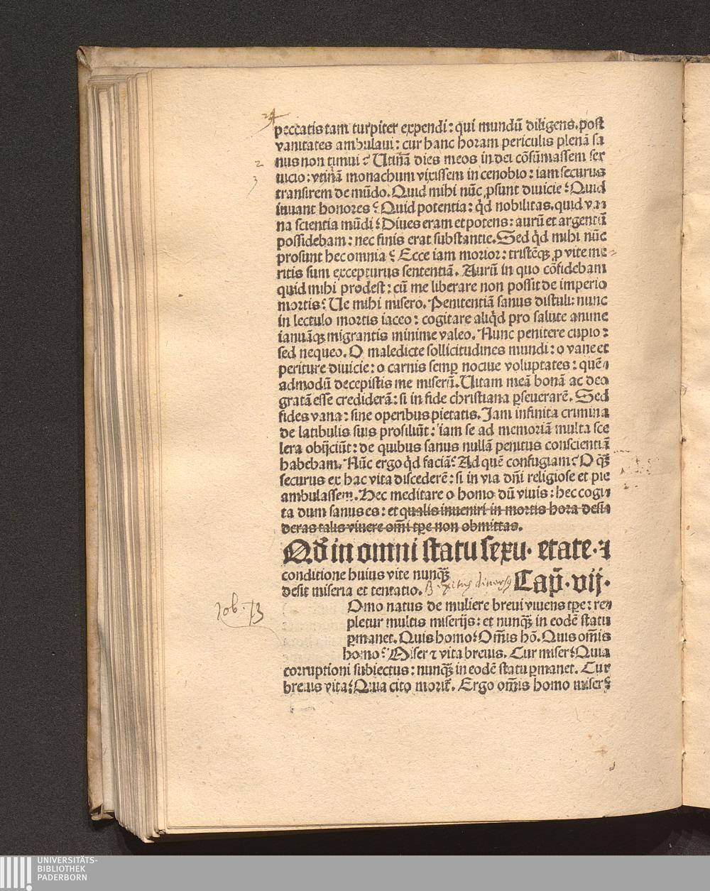 Q[uo]d in omni statu sexu etate et conditione huius vite nunq[uam] desit miseria[...]