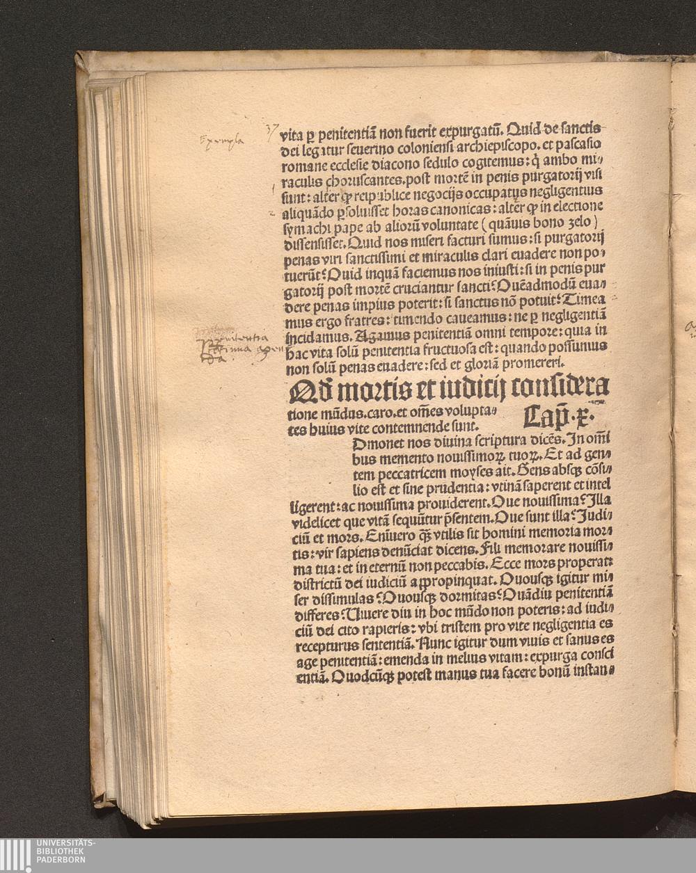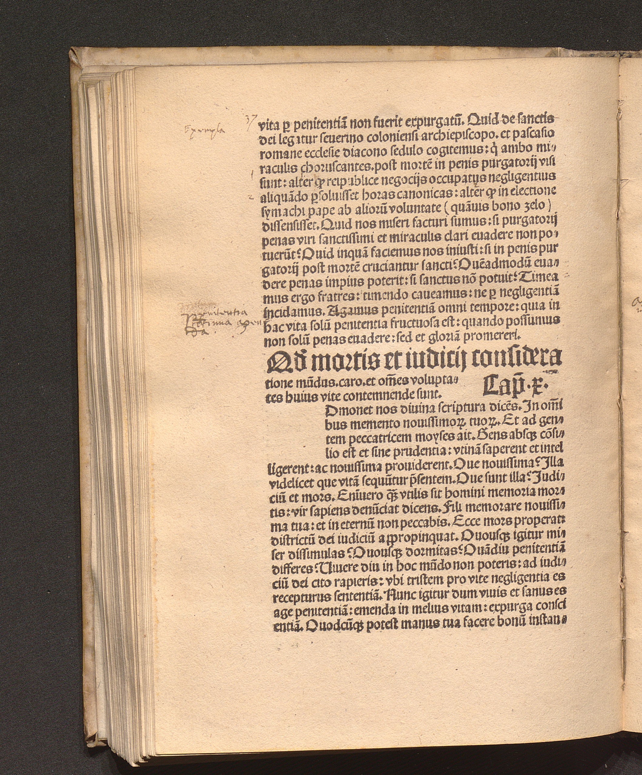 Q[uo]d mortis et iudicii consideratione mu[n]dus caro et om[n]es voluptates huius vite contemnende sunt. Cap[itulum] x.