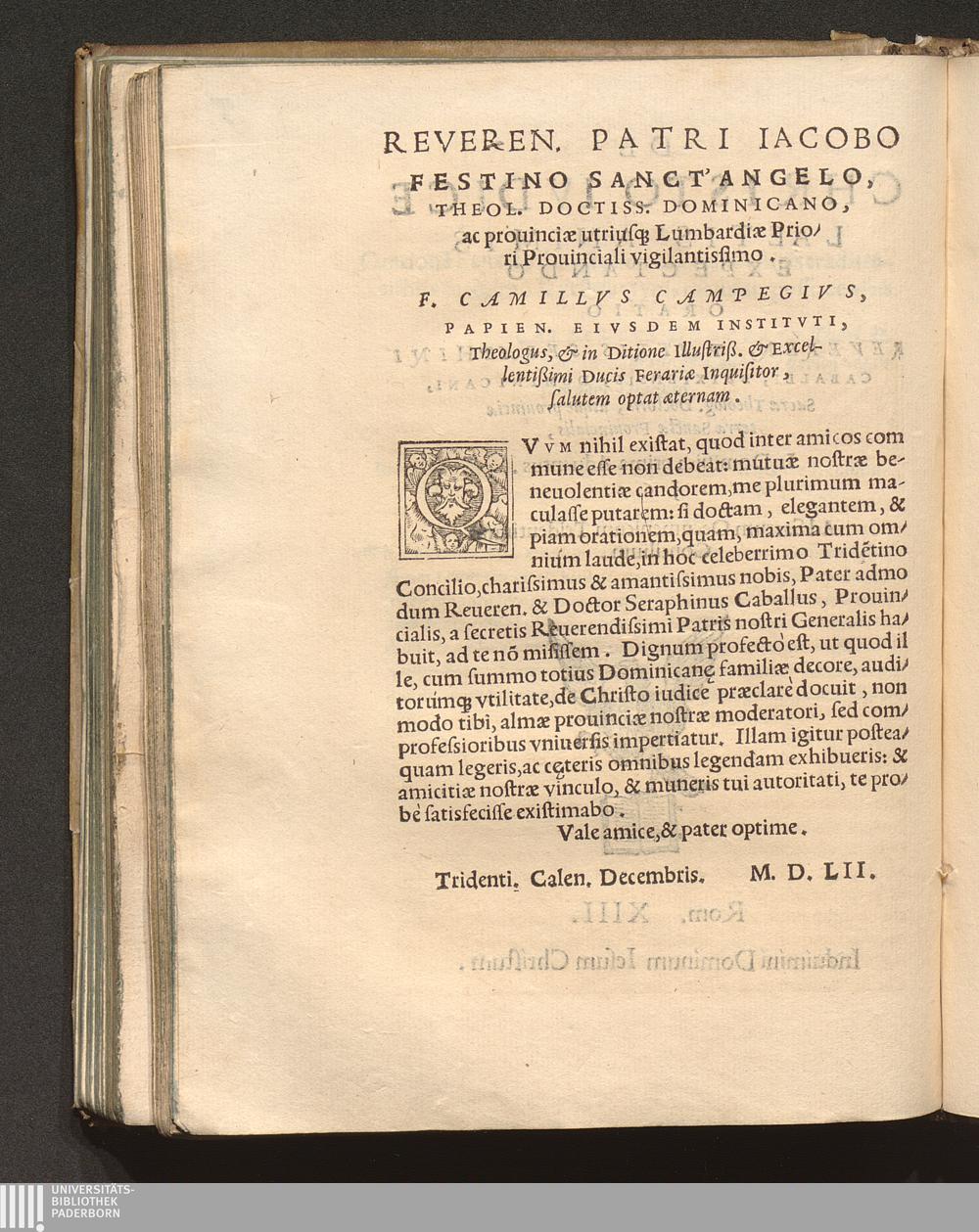 De Christo Ivdice Laetis Animis Expectando Oratio Reveren. Patris Seraphini Caballi, Brixiensis, Dominicani, Sacræ Theolog. Doctoris, atque prouinciæ terræ Sanctæ Prouincialis : In Dominica prima Aduentus. 1562. Ad Sacrum Oecumenicum Tridentinum Concilium