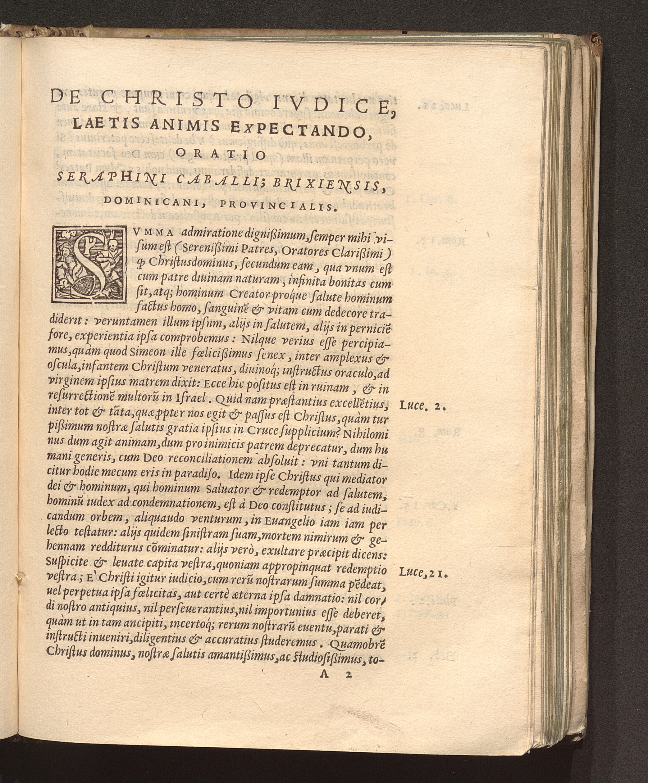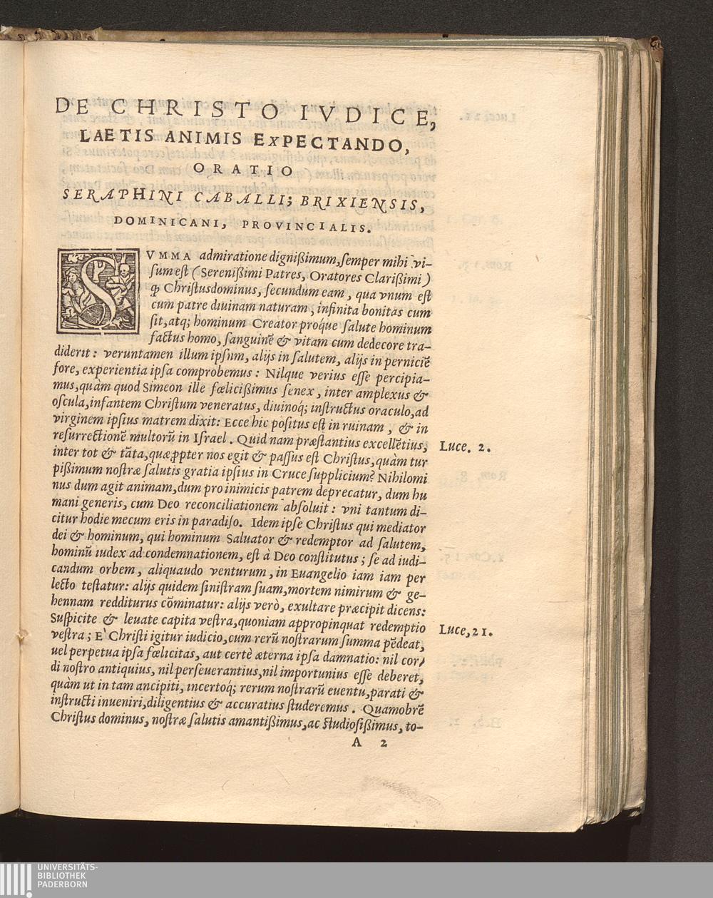 De Christo Ivdice Laetis Animis Expectando Oratio Reveren. Patris Seraphini Caballi, Brixiensis, Dominicani, Sacræ Theolog. Doctoris, atque prouinciæ terræ Sanctæ Prouincialis : In Dominica prima Aduentus. 1562. Ad Sacrum Oecumenicum Tridentinum Concilium