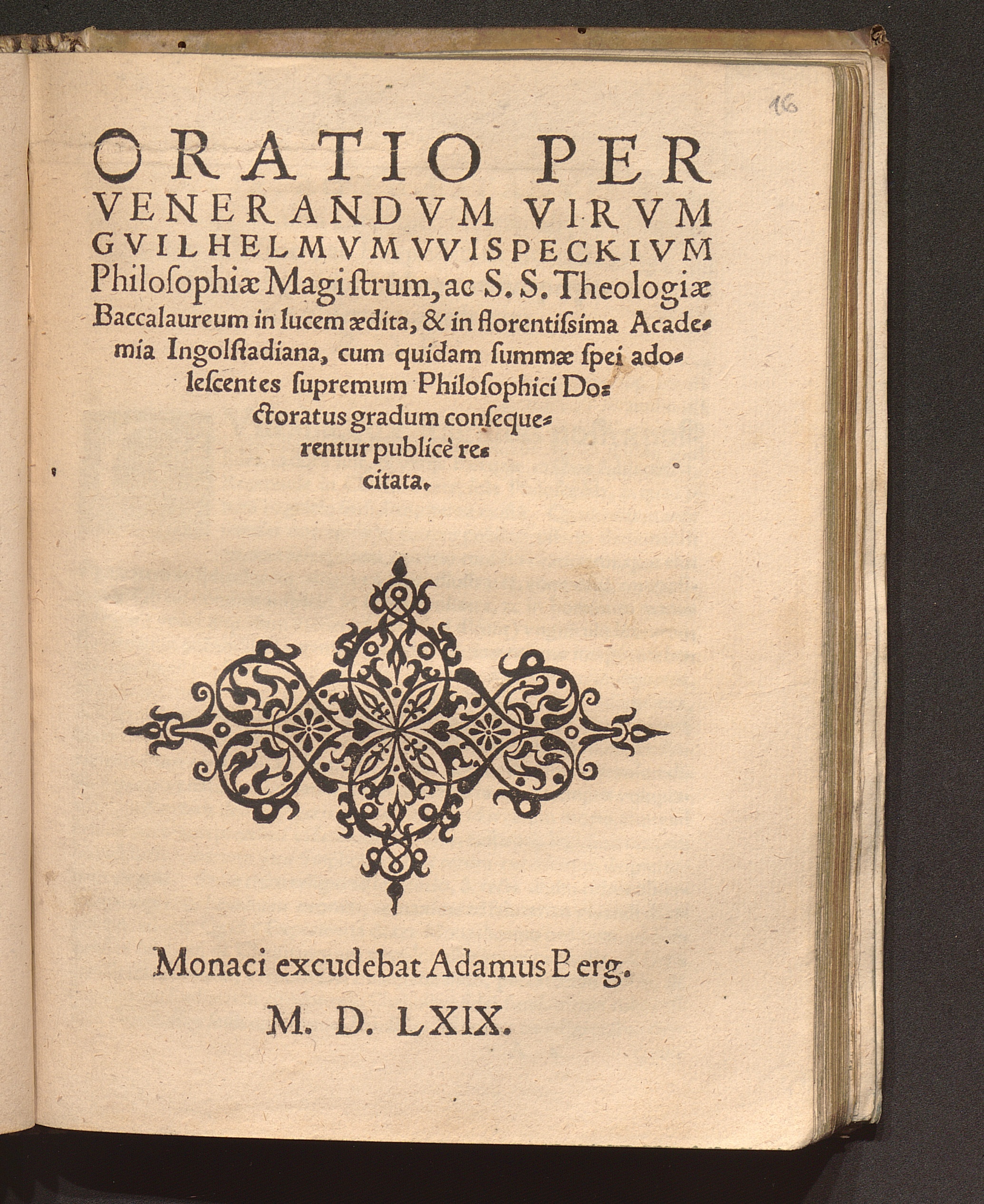 Oratio Per Venerandvm Virvm Gvilhelmvm VVispeckivm Philosophiæ Magistrum, ac S. S.[...]