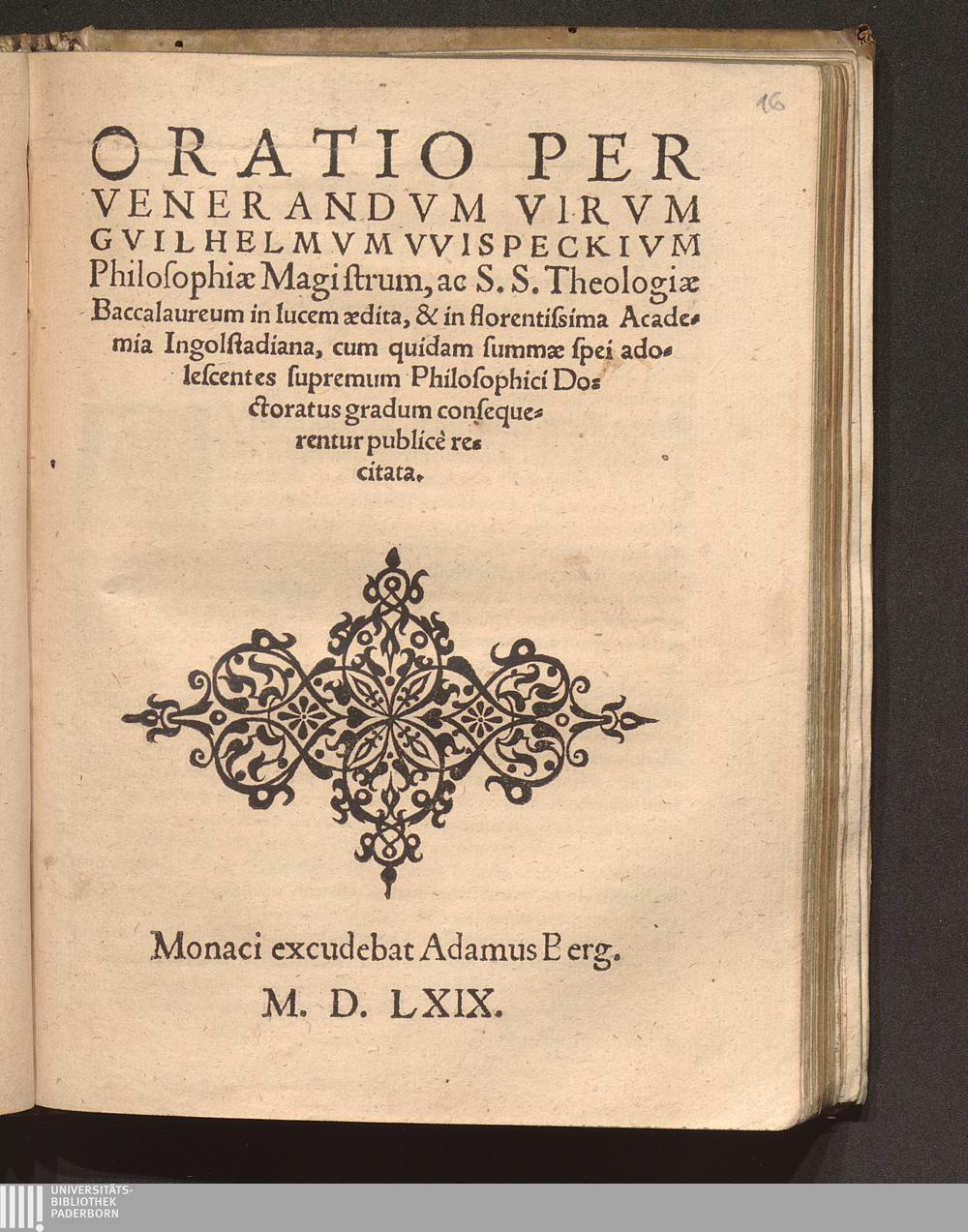 Oratio Per Venerandvm Virvm Gvilhelmvm VVispeckivm Philosophiæ Magistrum, ac S. S. Theologiæ Baccalaureum