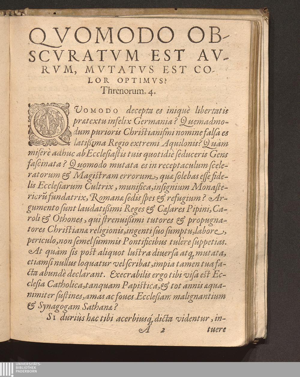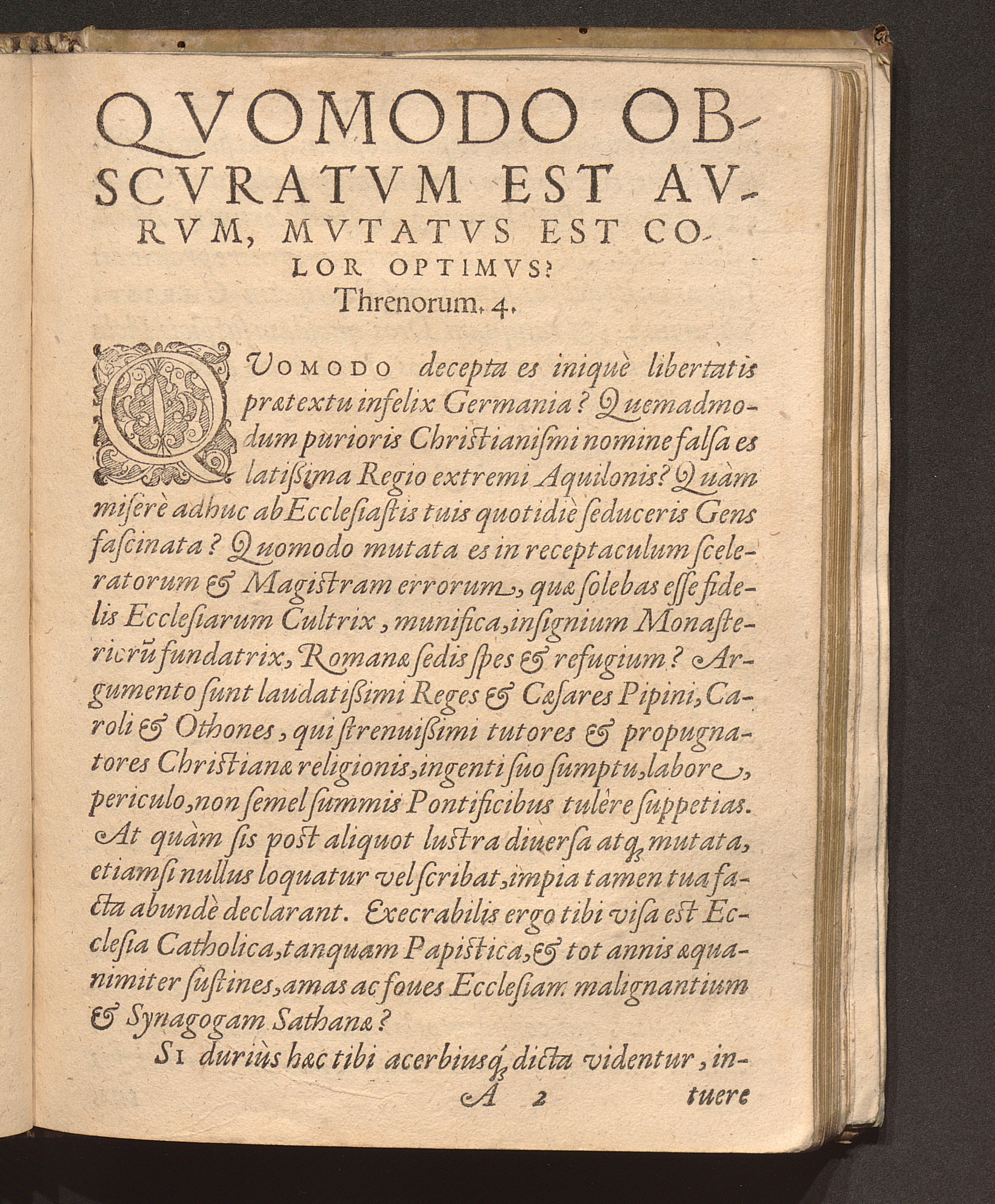 Lamentatio Pia Sive Deploratio Præsentis Germaniæ status, præsertim ob veteris Religionis cum noua commutationem / Avthore Uiro quodam erudito & Germanicæ Nationis amante