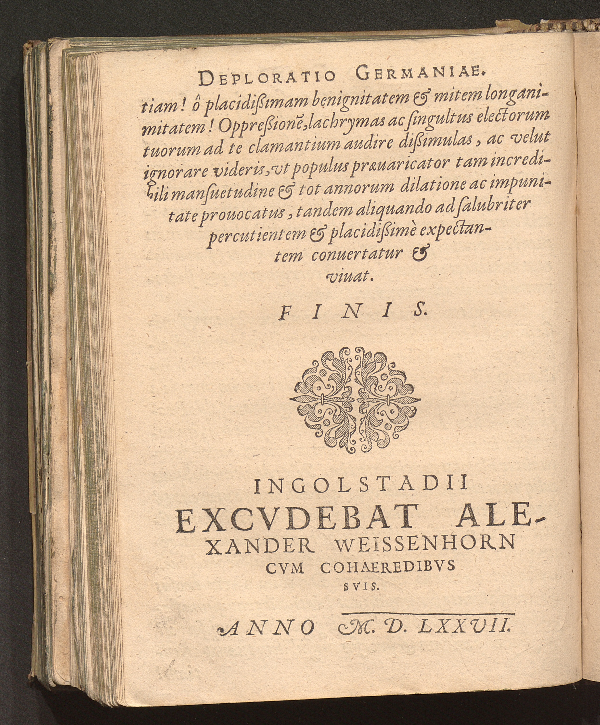 Lamentatio Pia Sive Deploratio Præsentis Germaniæ status, præsertim ob veteris Religionis cum noua commutationem / Avthore Uiro quodam erudito & Germanicæ Nationis amante