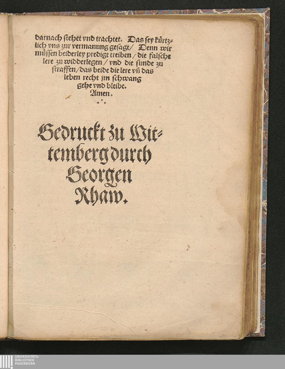 Wilch die rech-||te Kirche/ Vnd da-||gegen wilch die falsche Kirch || ist/|| : Christlich antwort vnd || tröstliche vnterricht/|| Widder das Pha-||risaisch ge-||wesch || Georgij Witzels.|| / Justus Jonas. D.|| Wittemberg.||