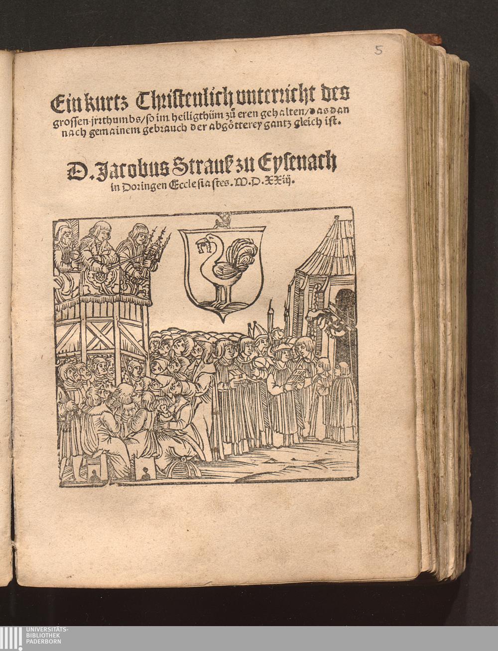 Ein kurtz Christenlich vnterricht des grossen jrrthumbs/ so im heiligthüm zů eren gehalten/ das dan nach gemainem gebrauch der abgoetterey gantz gleich ist / D. Jacobus Strauß zu Eysenach in Doringen Ecclesiastes