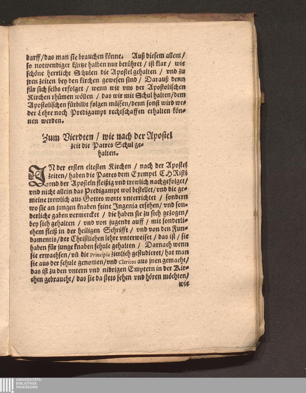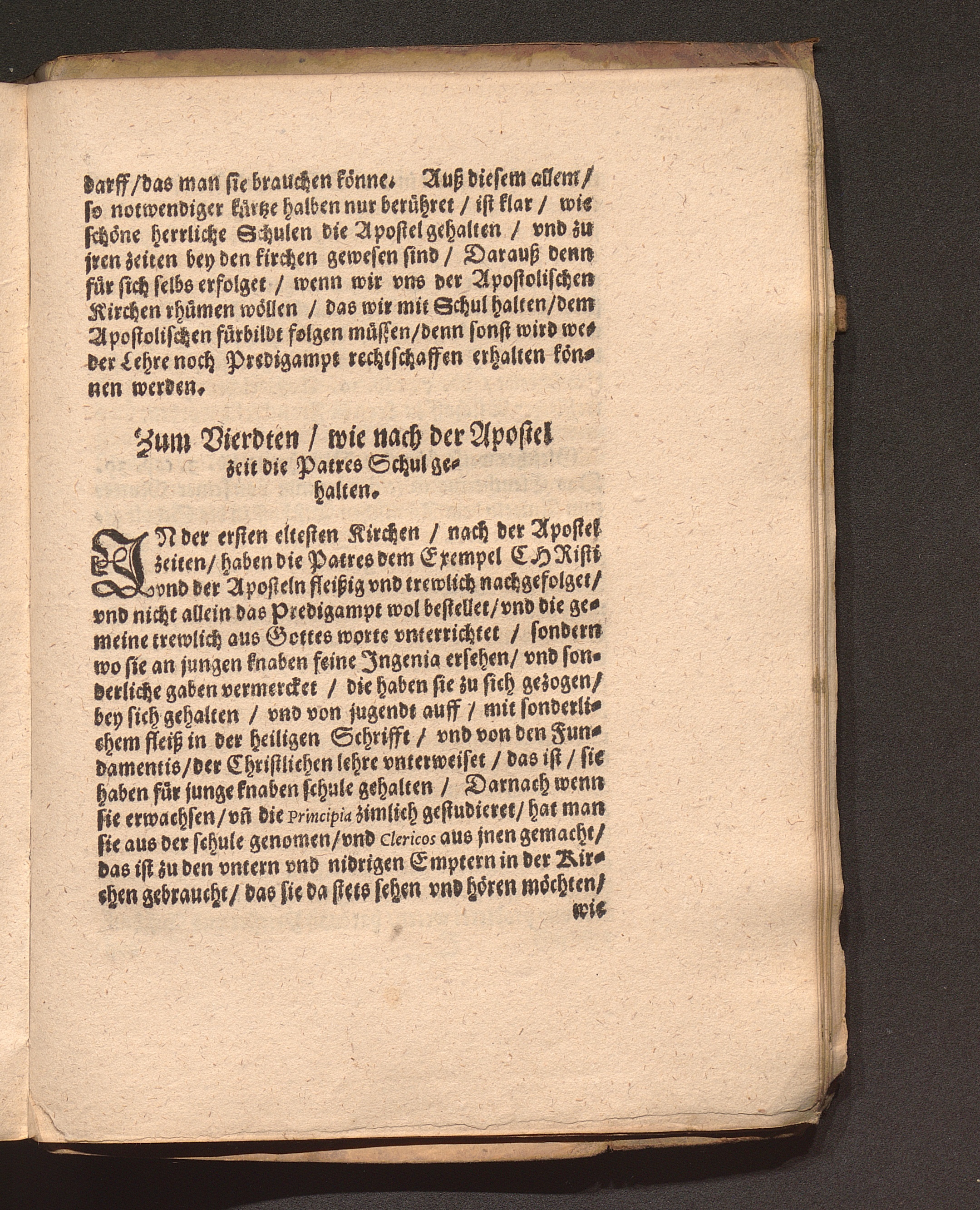 Zum Vierdten/ wie nach der Apostel zeit die Patres Schul gehalten.